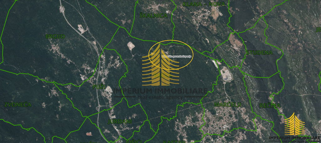 Zemljište je pravilnog oblika, dimenzija 60×20 te na idealnoj lokaciji u zelenoj oazi udaljenoj samo 15km od Opatije i Rijeke te 4km od čvora autoceste A8.