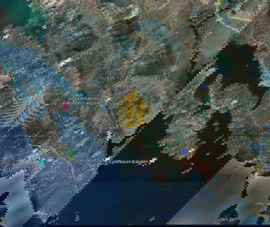 Prodaje se građevinsko zemljište površine 3438 m2 na odličnoj lokaciji na konkretno Jadranskoj magistrali u općini Tribunj između Vodica i Pirovca.