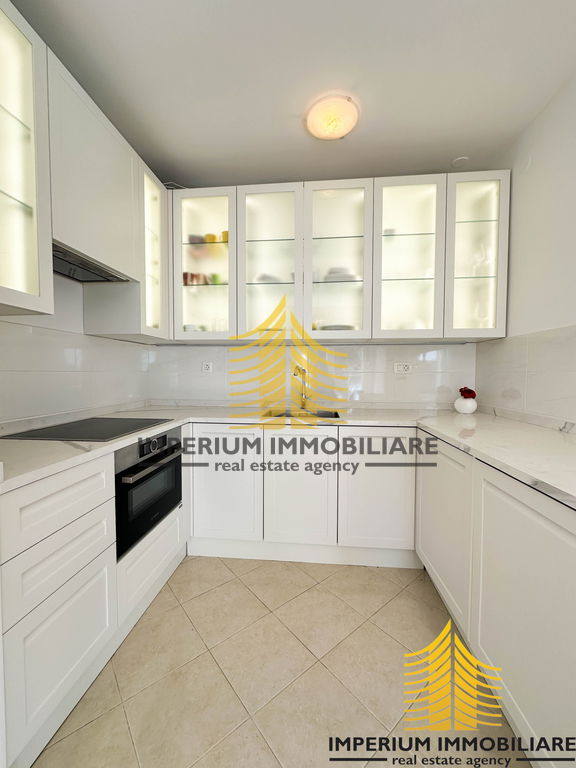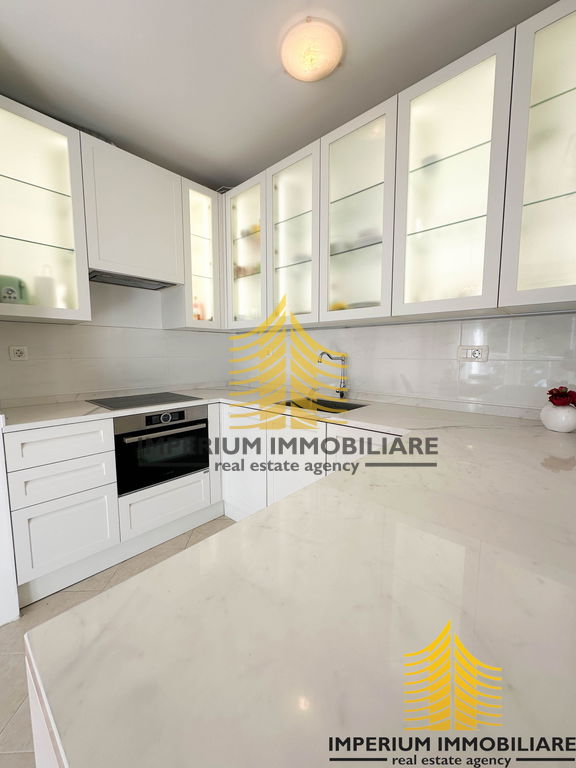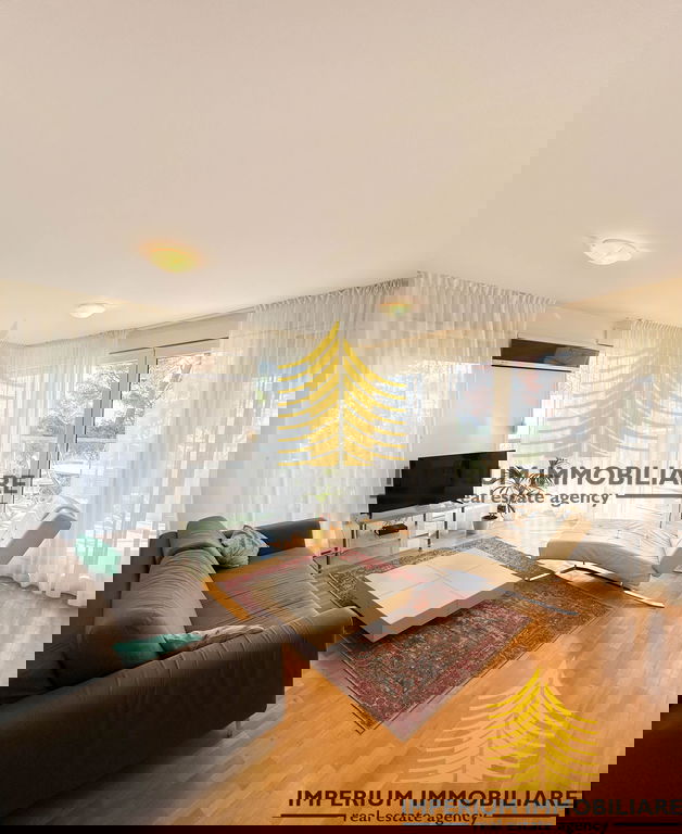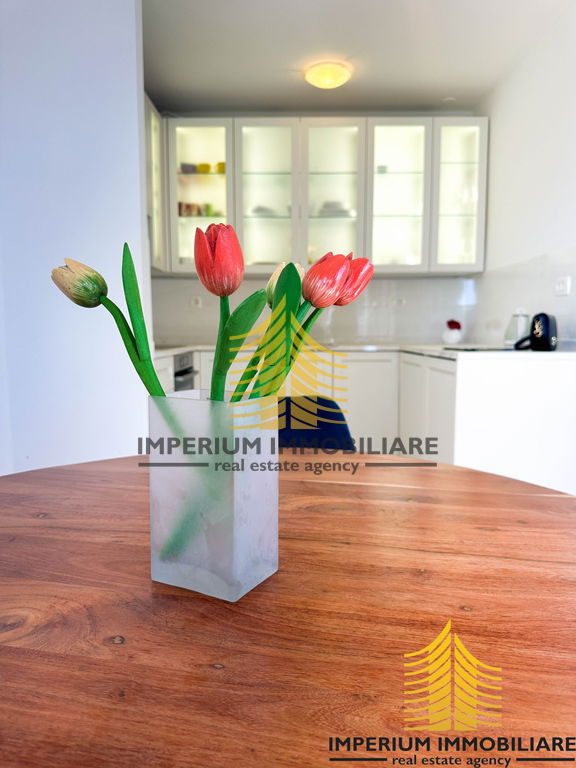 Interijer stana opremljen je modernom i funkcionalnom Scavollini kuhinjom, koja je u potpunosti opremljena svim potrebnim aparatima. Prostrani ormari nude dovoljno prostora za pohranu, dok su parket i pločice u stanu odabrani s pažnjom, dajući mu elegantan i topao ugođaj.