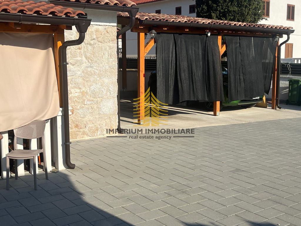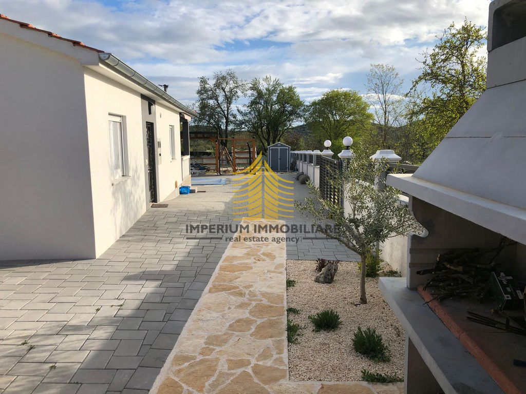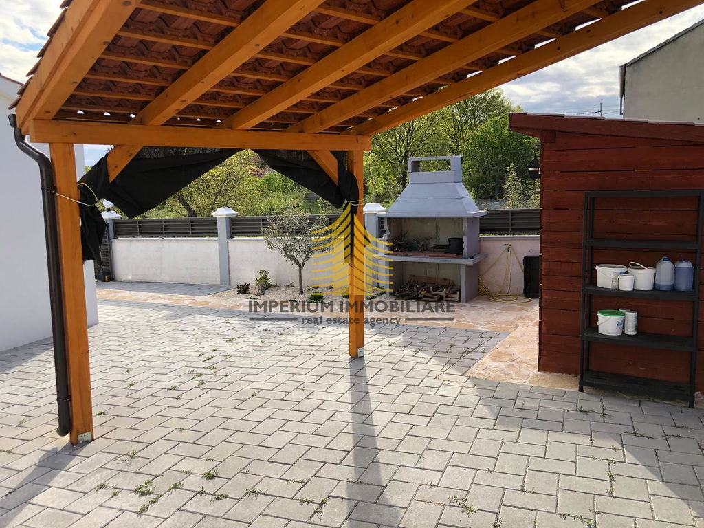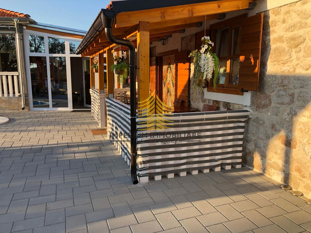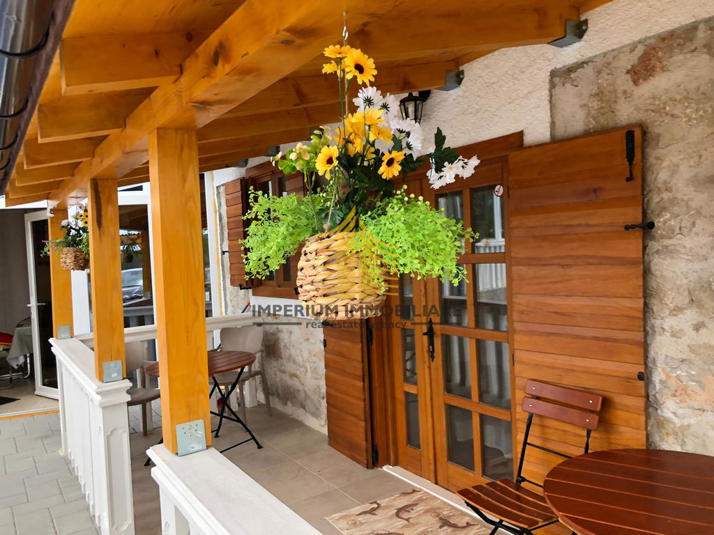 Ova moderna kamena kuća nudi četiri prostrane spavaće sobe, idealne za obitelj ili investitore. Njena pozicija osigurava obilje prirodnog svjetla i privatnosti, a uređena okućnica s terasom i vrtom dodatno naglašava njezin šarm.