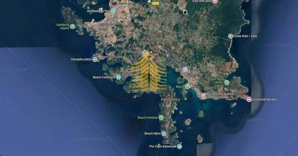 Prodaje se građevinsko zemljište površine 1500 m2 u naselju Pomer pored Pule. U blizini se nalaze kamp Pomer, ACI marina, Pula, aerodrom te park prirode Kamenjak. Zemljište se nalazi 400 metara od mora. U neposrednoj blizini parcele se nalazi kompletna infrastruktura te asfaltni put.