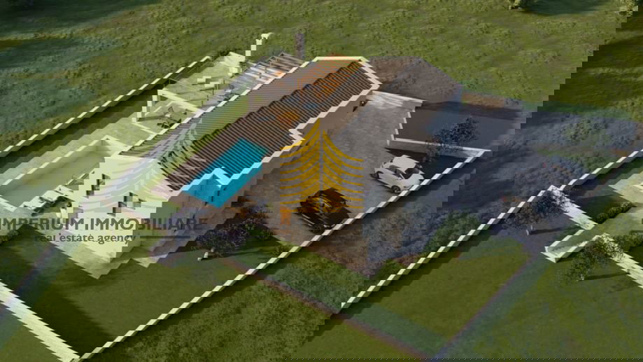 Na prodaju je građevinsko zemljište smješteno u prekrasnom mjestu Rebići, u srcu Istre. Zemljište dolazi s projektom za izgradnju moderne vile s bazenom.