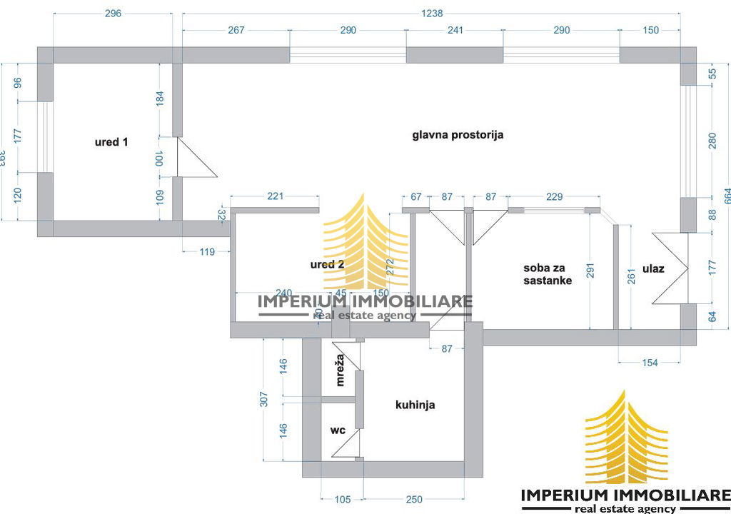 Prostor se sastoji od ureda, spremišta, toaleta, opremljene čajne kuhinje, ureda i glavne prostorije podijeljene na tri dijela (soba za sastanke, otvoreni ured i otvoreni prostor).