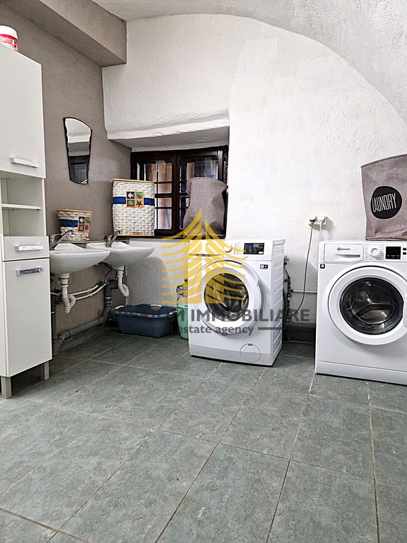 Ova prostrana kuća raspolaže s tri spavaće sobe. Unutrašnjost je opremljena kuhinjom s aparatima, udobnim krevetima, TV-om i perilicom rublja, što osigurava praktičnost i udobnost svakodnevnog života. Grijanje i hlađenje osigurani su putem klima uređaja i struje, što doprinosi ugodnoj atmosferi tijekom cijele godine.