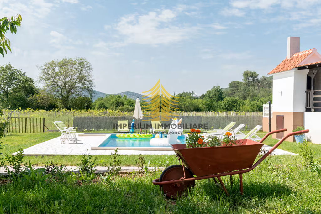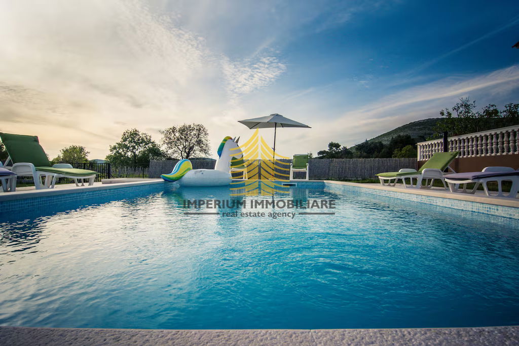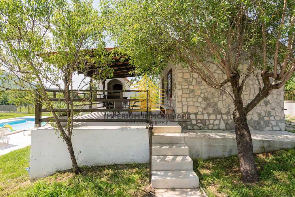 Na prodaju je samostojeća kuća površine 240 m2 sa velikom okućnicom i bazenom, smještena u mirnom dijelu Labina, idealna za one koji traže privatnost i blizinu prirode.