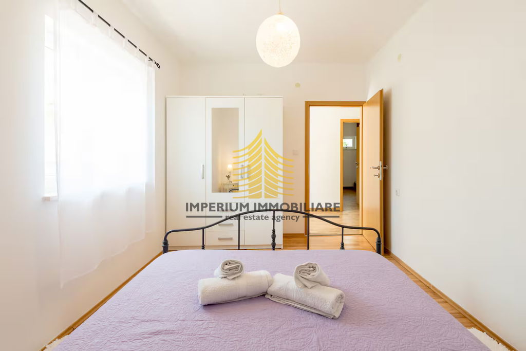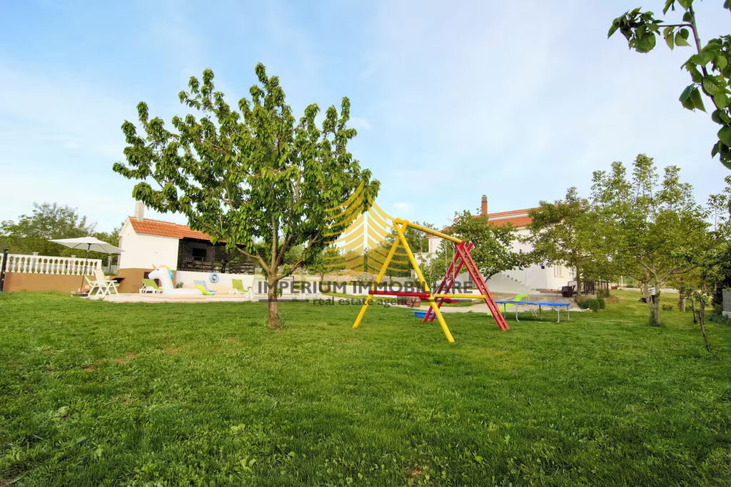 Ova prostrana nekretnina nudi tri spavaće sobe i ističe se vrlo sunčanom orijentacijom, što dodatno doprinosi ugodnoj atmosferi svakog prostora. Adaptacija kuće izvršena je 2019. godine, što osigurava suvremenost i funkcionalnost unutrašnjosti.