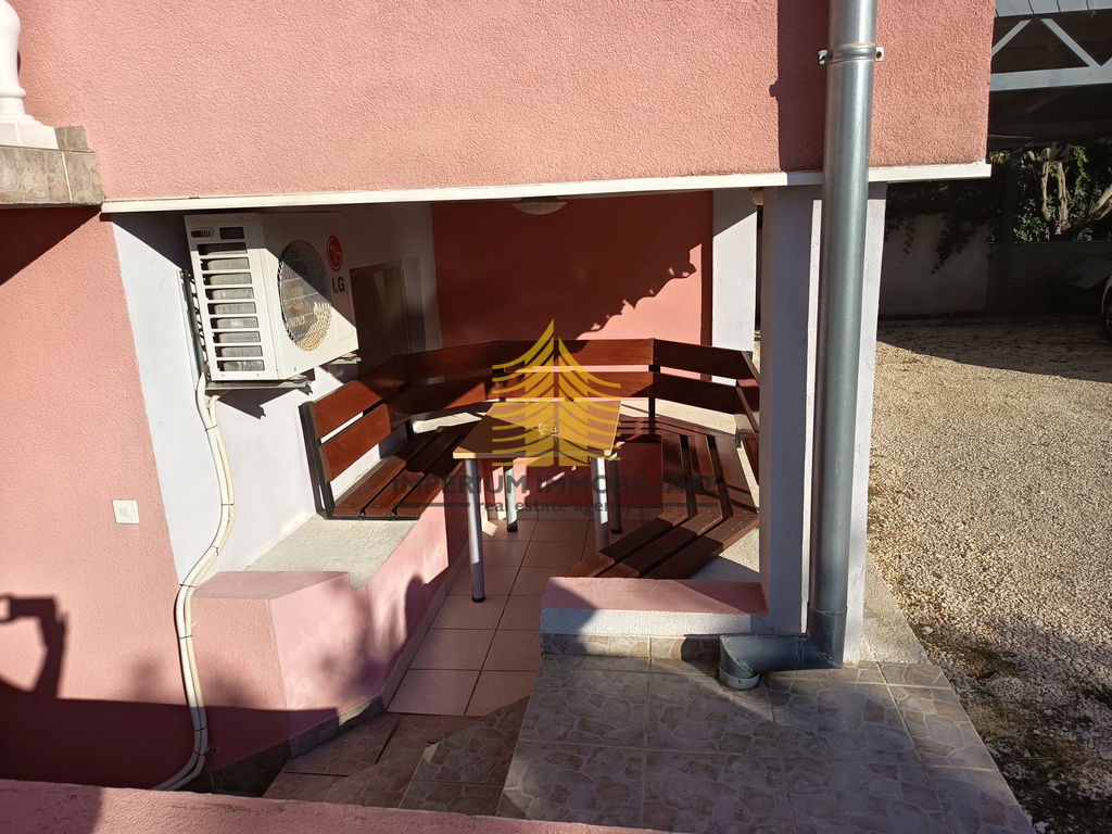 Dodatne prednosti uključuju balkon s kojeg se pruža pogled prema moru, podrum za dodatni prostor i organizaciju, dvorište idealno za boravak na otvorenom, kao i natkriveno parkiralište i parkirno mjesto. Grijanje i hlađenje osigurani su klima uređajem i električnim instalacijama, što omogućuje ugodnu temperaturu tijekom cijele godine.