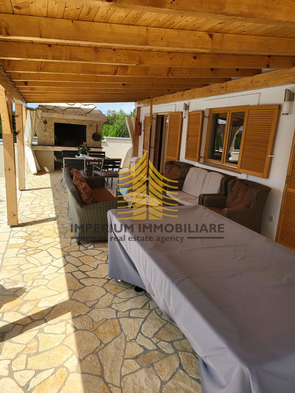 Unutrašnjost vile opremljena je klima uređajem, a dodatne prostorije omogućuju organizaciju i pohranu prema osobnim zahtjevima. U sklopu nekretnine nalaze se podrum, terasa, vrt, dvorište, konoba, natkriveno parkiralište i garaža, što dodatno povećava funkcionalnost i komfor boravka. Luksuzni sadržaji uključuju bazen, saunu i roštilj, što ovu vilu čini savršenim mjestom za opuštanje i druženje u privatnosti vlastitog doma.