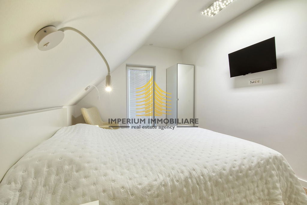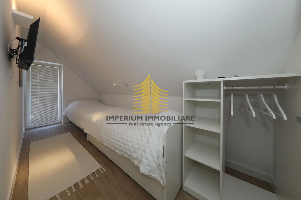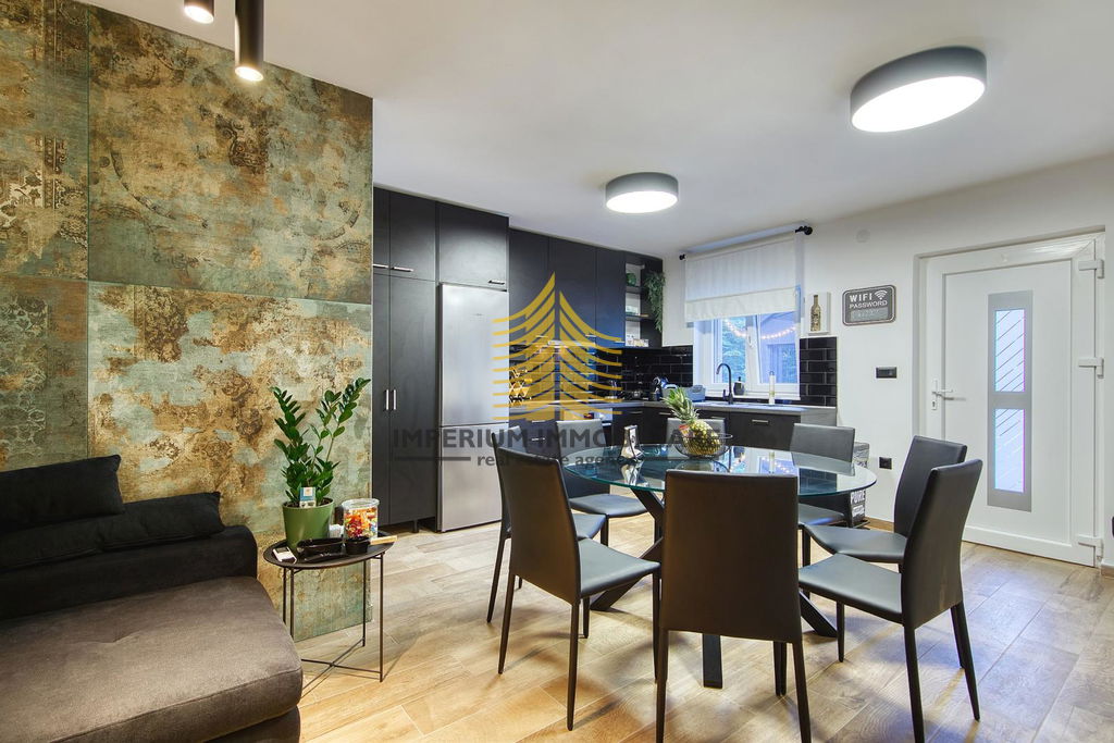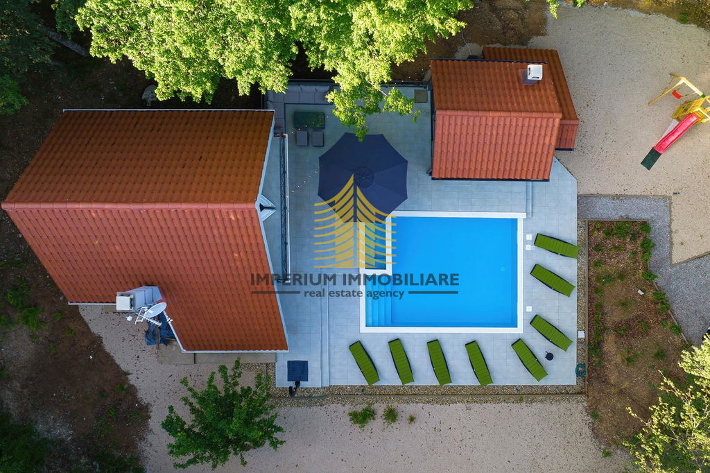 Kuća je 2020. godine temeljito adaptirana, što se ogleda u modernom i funkcionalnom dizajnu interijera. Prostori su opremljeni kuhinjom s aparatima, perilicom posuđa, perilicom rublja, te dodatnim elementima kao što su kada, TV, krevet i radni stol. Podno grijanje, kamin i klima uređaj osiguravaju udobnost i tijekom hladnijih i toplijih mjeseci.