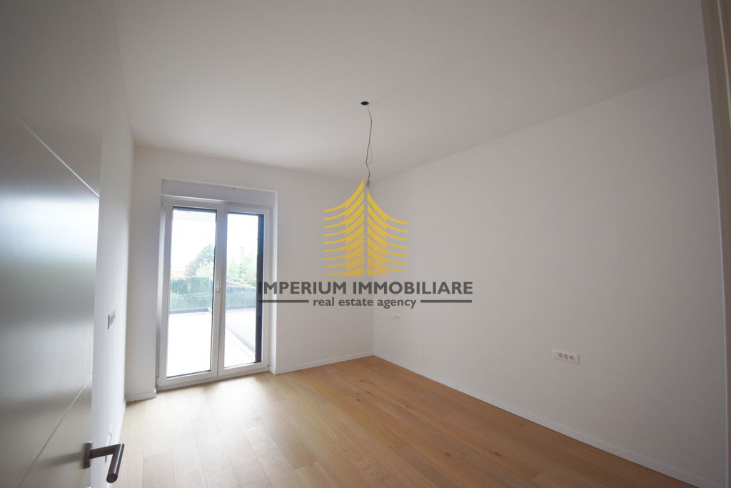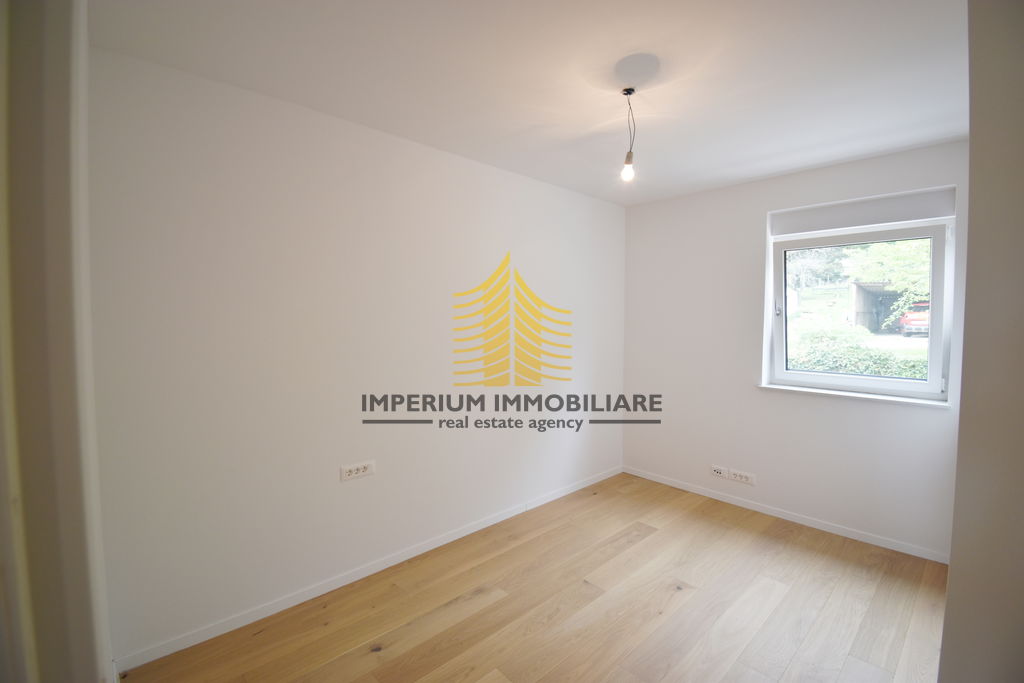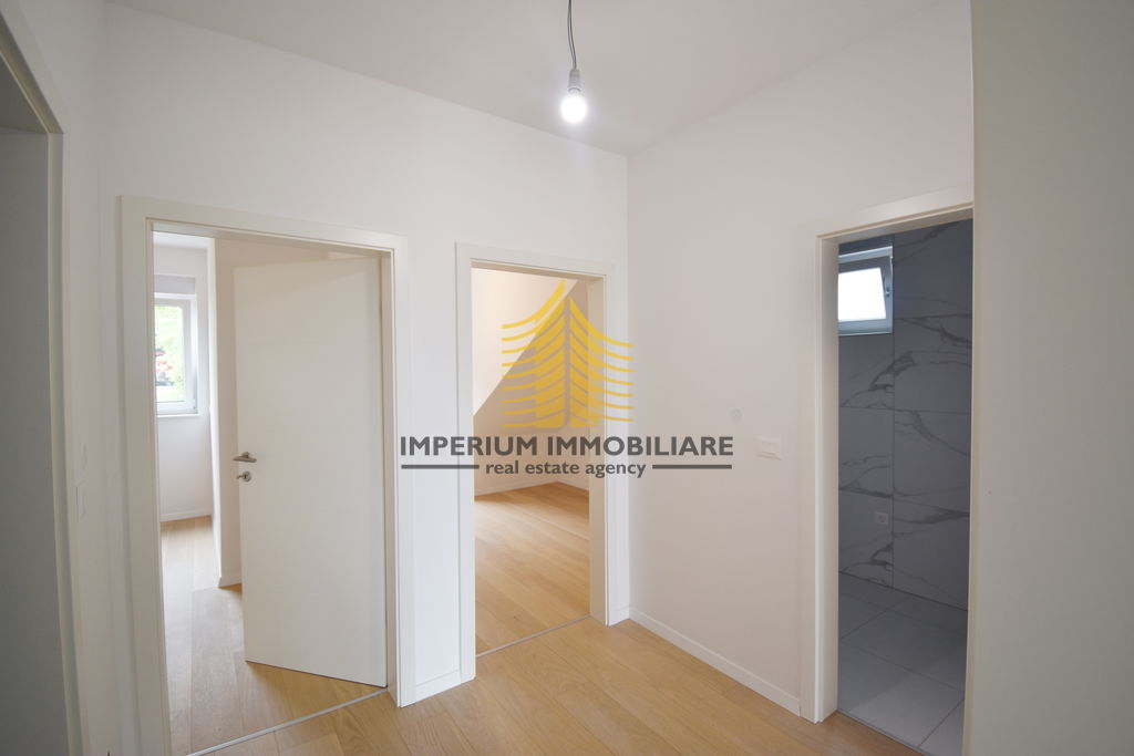 Podne obloge izrađene su od prirodnog drva renomiranog švicarskog brenda Bauwerk Parkett, a električne instalacije i prekidači pripadaju liniji Bticino, čime je osigurana estetska i tehnička kvaliteta u svakom detalju. Objekt raspolaže s četiri garažna mjesta te s dodatna dva vanjska parkirna mjesta.