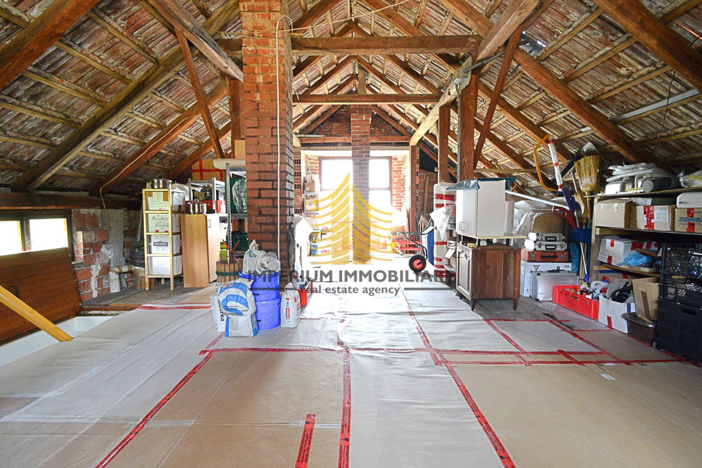 Kuća se sastoji od 2 odvojena stana, tavana i podruma.