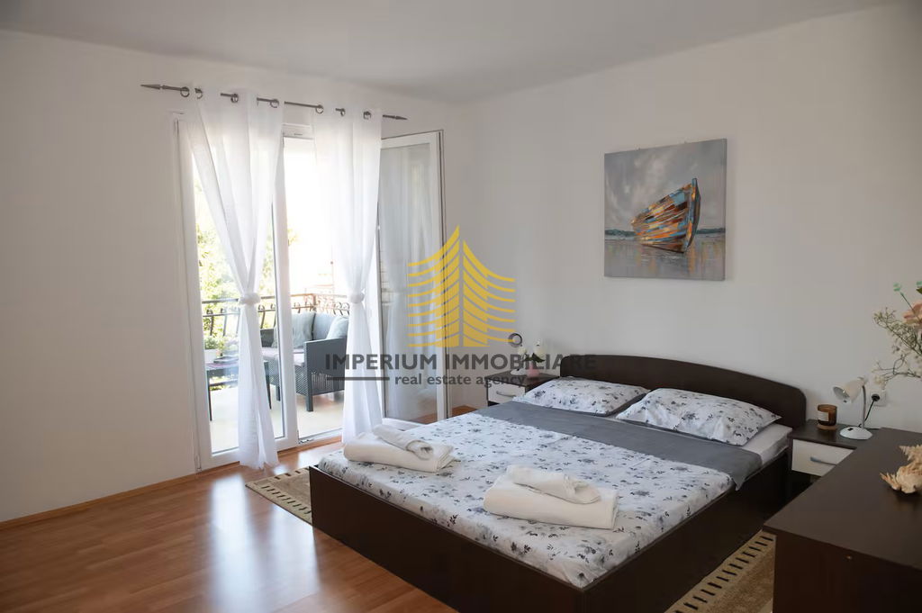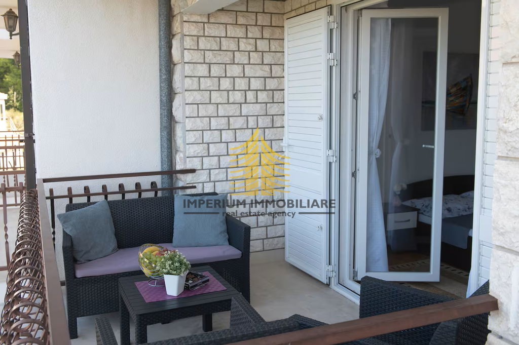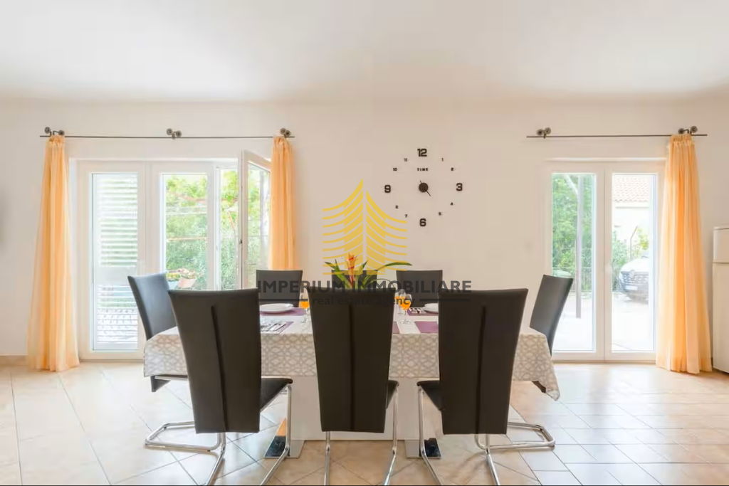 Kuća se ističe svojom umjetničkom notom i vrlo sunčanom pozicijom, a iz prostora se pruža lijep pogled na more i okolnu prirodu. Dodatna vrijednost ove nekretnine je vrt, dvorište te terasa koja omogućuje uživanje na otvorenom. Balkon dodatno pojačava osjećaj prostranosti i povezanosti s okolinom.