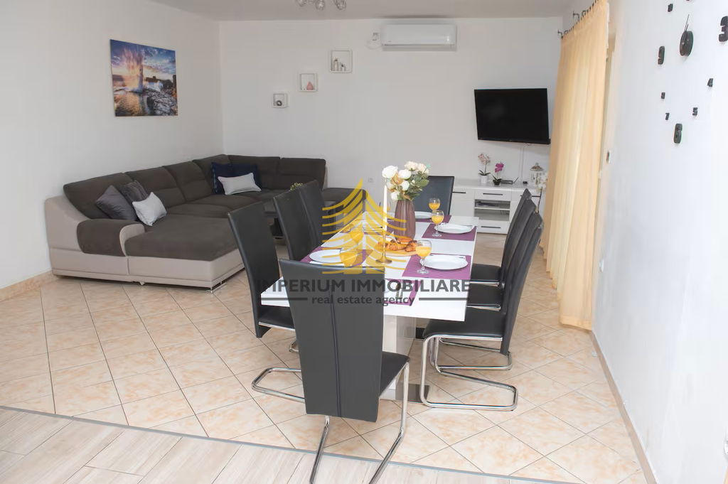Lokacija je veliki adut ove nekretnine; smještena je u neposrednoj blizini mora, uz pristup asfaltiranom putu, što osigurava jednostavnu povezanost i svakodnevnu praktičnost. Blizina prirode dodatno doprinosi kvaliteti života, a energijski certifikat B potvrđuje dobru energetsku učinkovitost kuće.
