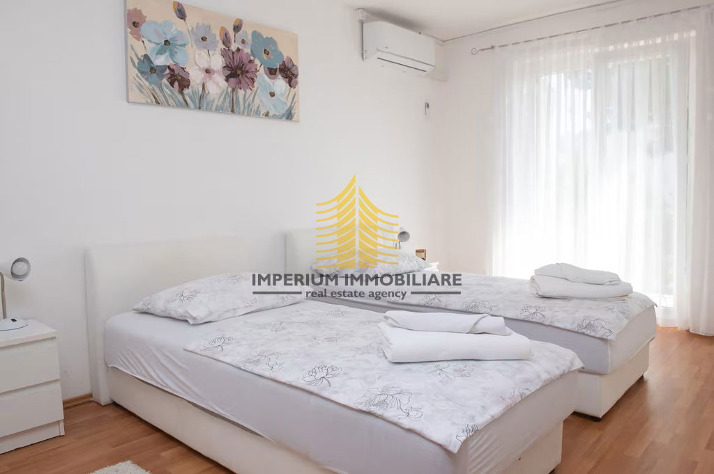 U ponudi je dvojna kuća površine 150 m2 smještena u atraktivnoj lokaciji Podstrane. Ova nekretnina pruža pet prostranih spavaćih soba te se nalazi na parceli površine 335 m2.