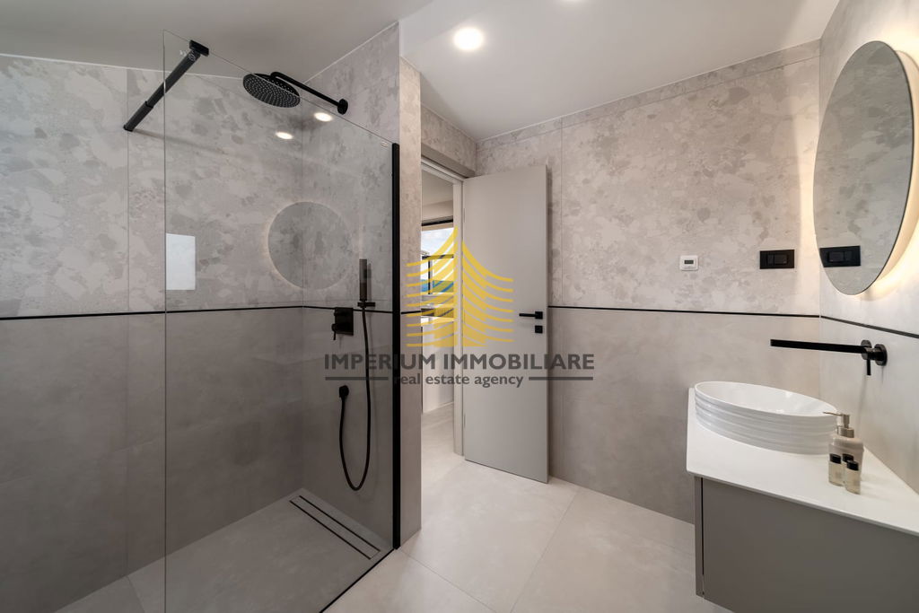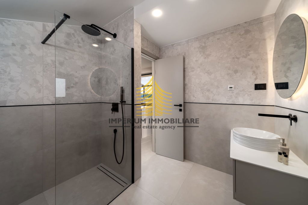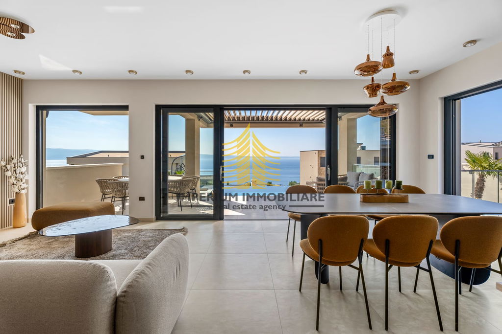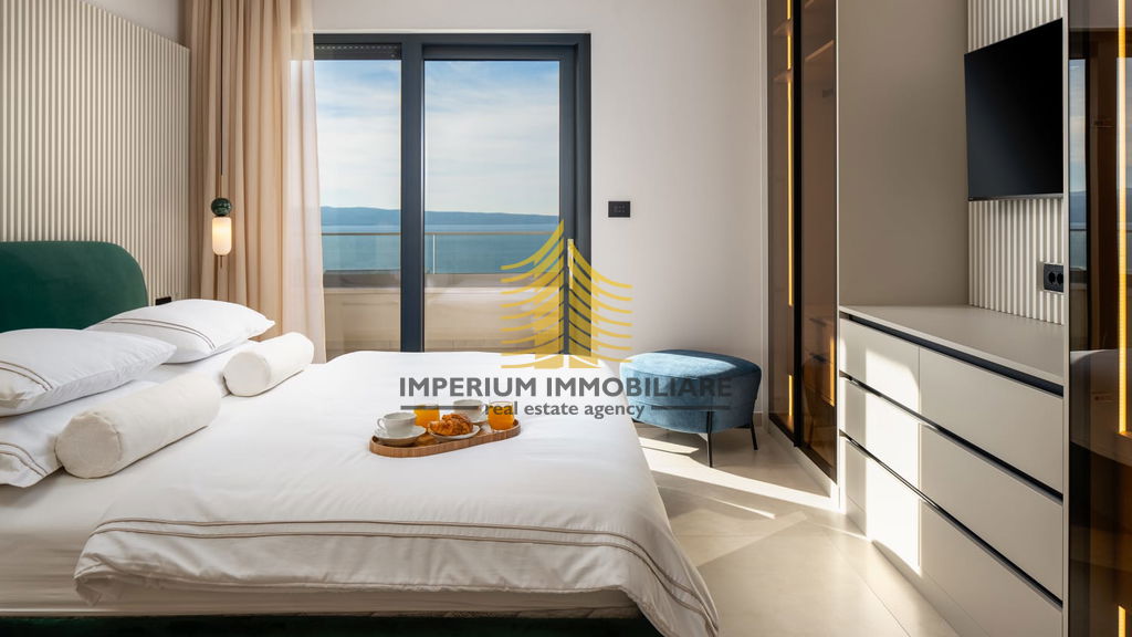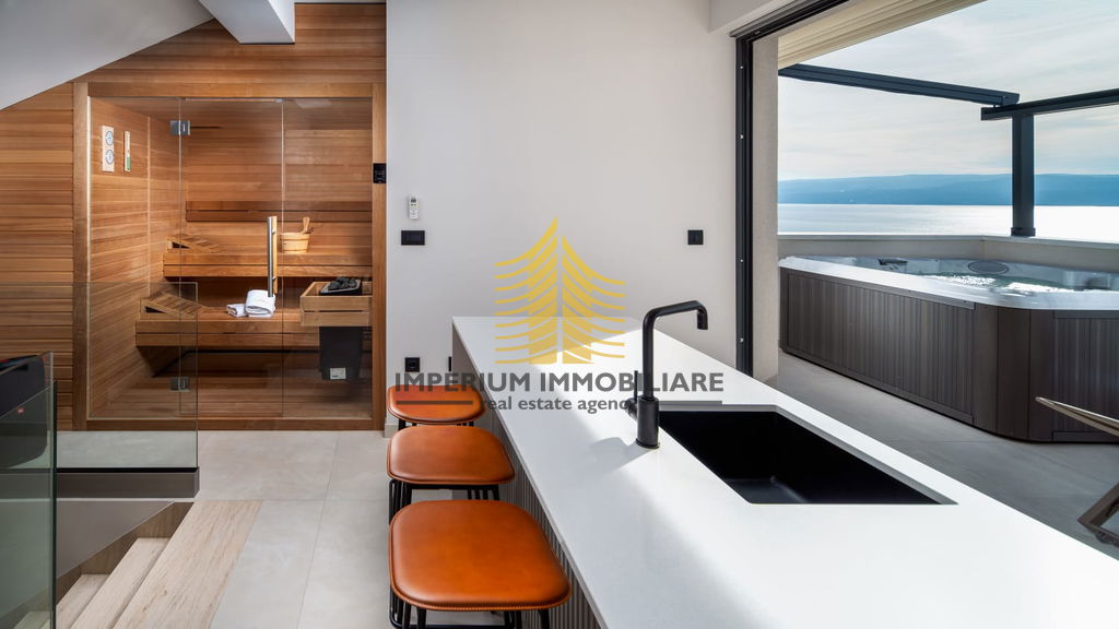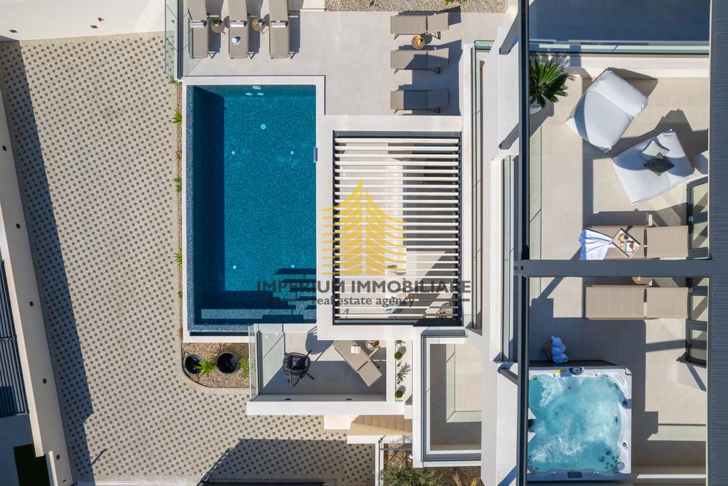 Vila je opremljena vrhunskim dodatnim sadržajima kao što su bazen, jacuzzi, sauna, roštilj, te wellness i fitness prostor. Uživajte u pogledu na more s vašeg balkona ili se opustite uz kamin u ugodnom dnevnom boravku. Pametna kuća s video nadzorom osigurava sigurnost i jednostavno upravljanje.
