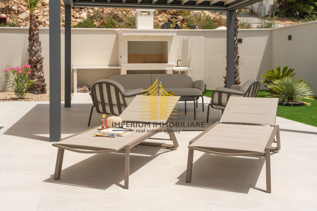 Smještena u mirnoj lokaciji, ova vila nudi predivan pogled na more i planine, istovremeno pružajući jednostavan pristup svim potrebnim sadržajima. Uređena okućnica i mogućnost roštiljanja dodatno doprinose uživanju u vanjskom prostoru, dok blizina infrastrukture i atrakcija čini ovu nekretninu izuzetno atraktivnom za obitelji i investitore.