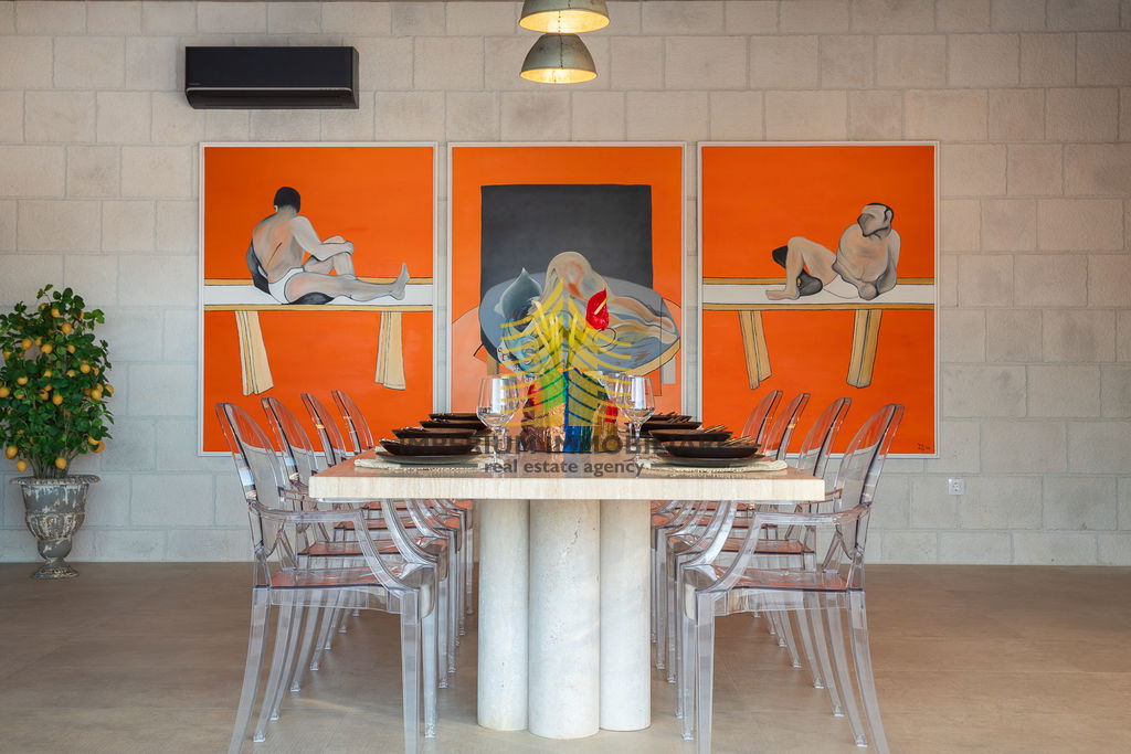 Dizajnerske uljane slike (180 x 120 cm) i dizajnerske fotelje daju umjetnički dodir prostoru.