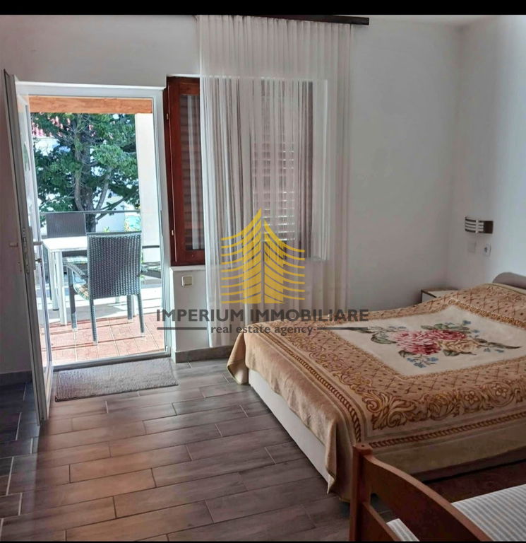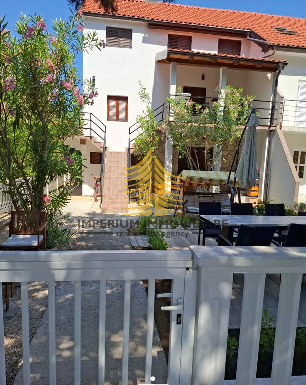 Na prodaju je kuća ukupne površine 233 m2, smještena na parceli od 290 m2, na mirnoj lokaciji u blizini mora, okružena zelenilom i obiljem dnevnog svjetla. Nekretnina se sastoji od ukupno 7 apartmana raspoređenih unutar glavne kuće, uz dodatni pomoćni apartman u dvorištu, što predstavlja iznimnu priliku za turističko ulaganje ili kombinaciju stanovanja i najma. Kuća je dodatno proširena nadogradnjom, čime je omogućen veći kapacitet i funkcionalniji raspored.