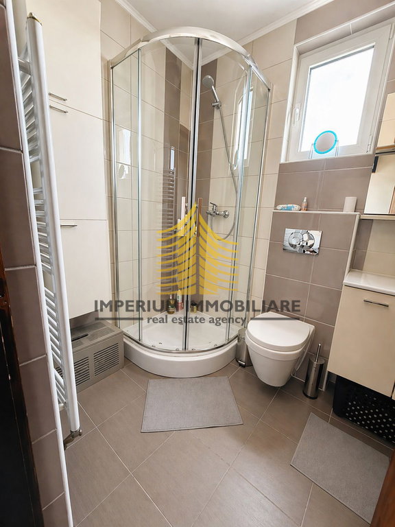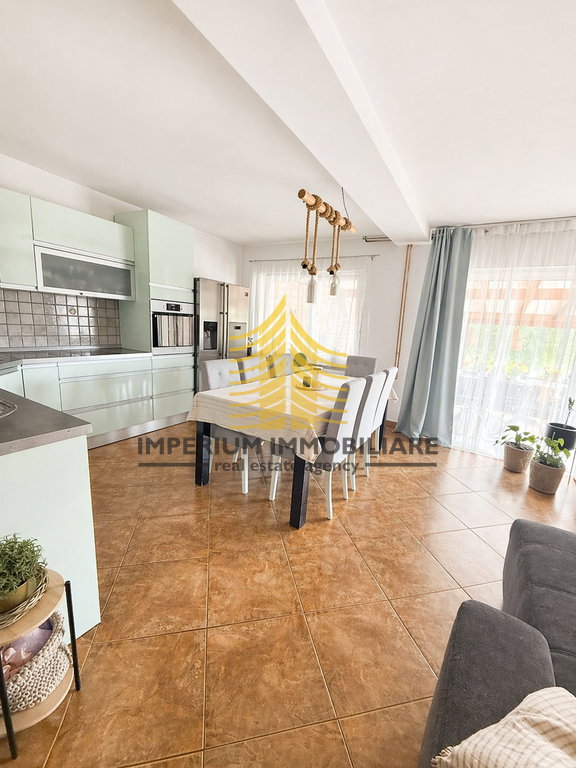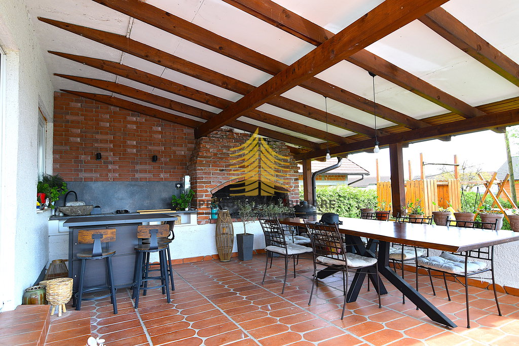 Unutrašnjost kuće opremljena je kuhinjom s modernim aparatima, perilicom posuđa i perilicom rublja. Dodatno, kuća raspolaže balkonom, dvorištem, ostavom/skladištem, garažom i parkiralištem, kao i vanjska kuhinja što pruža dodatnu praktičnost u svakodnevnom životu. Centralno grijanje te klima uređaj osiguravaju ugodnu temperaturu tijekom cijele godine.