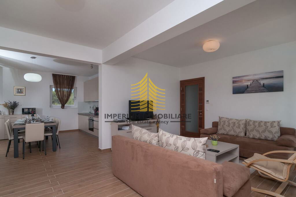 Nekretnina se sastoji od tri spavaće sobe, a orijentacija na sjever, jug i istok omogućuje obilje prirodne svjetlosti tijekom cijelog dana. Uređena i umjetnički osmišljena unutrašnjost opremljena je modernom kuhinjom s aparatima, perilicom posuđa, perilicom rublja, TV-om i krevetima, što dodatno doprinosi funkcionalnosti i udobnosti prostora.