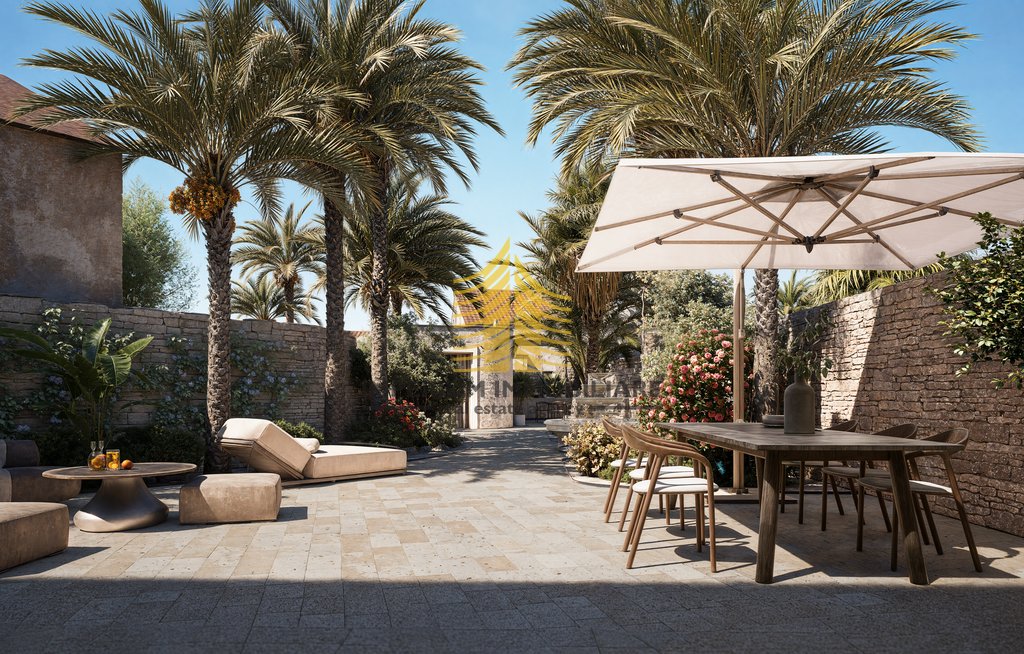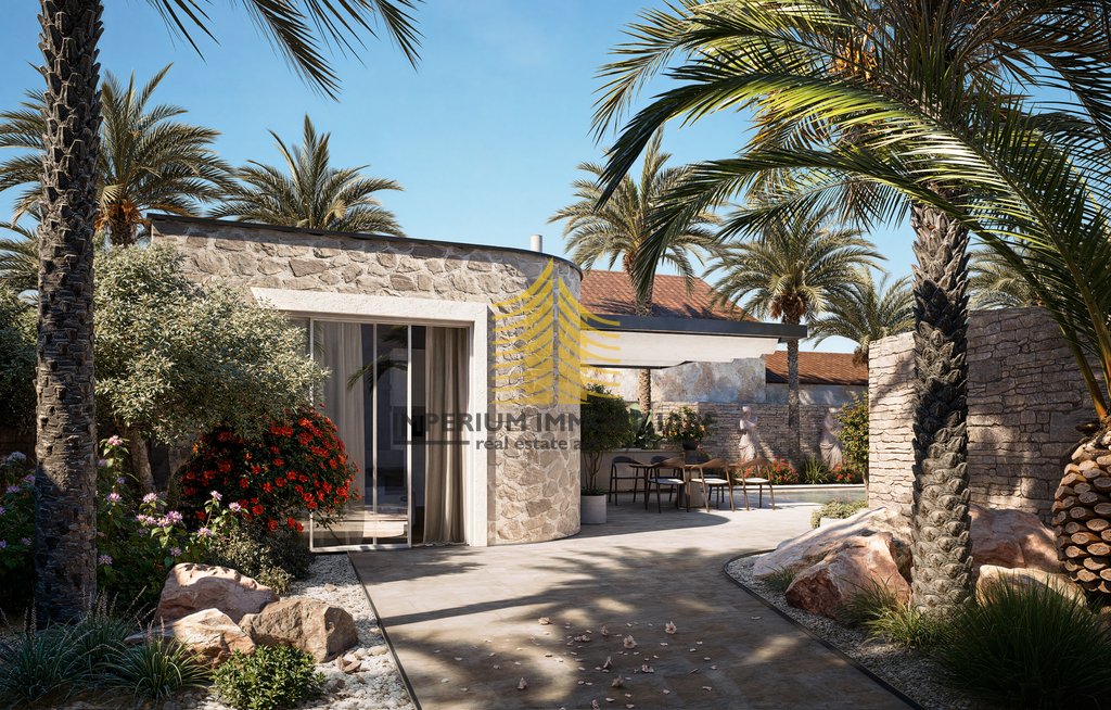 Na prodaju je samostojeća kuća površine 154 m2 smještena u Supetru, s pripadajućom parcelom od 476 m2. Ova kamena kuća odiše autentičnim šarmom i ističe se mirnom lokacijom te prekrasnim pogledom. Prostrano dvorište, vrt, vrtna kućica, ljetna kuhinja i bazen čine ovu nekretninu izvrsnim izborom za one koji traže savršeno mjesto za odmor ili svakodnevni život u umjetnički i dizajnerski uređenom prostoru.