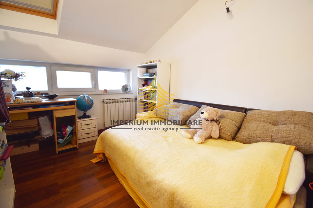 Kuća se sastoji od četiri spavaće sobe, što omogućuje optimalnu organizaciju prostora za veću obitelj ili za rad od kuće. Dodatnu vrijednost nekretnini daju balkon i terasa, idealni za opuštanje ili druženje na otvorenom, dok podrum nudi korisni prostor za pohranu. Garaža, natkriveno parkiralište i dvorište osiguravaju praktičnost i dodatnu sigurnost vozila te stvaraju ugodan vanjski ambijent.