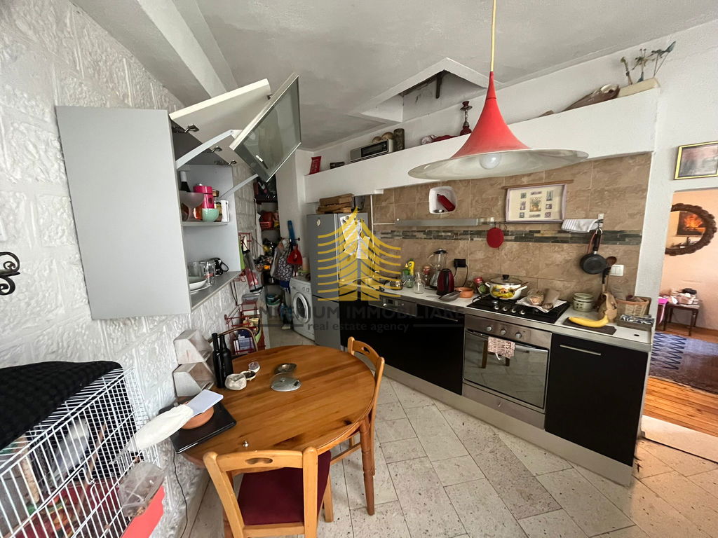 Nekretnina se ističe autentičnim starogradskim šarmom i dizajnerskim detaljima, savršeno uklopljenima u umjetnički ambijent. Kuća uključuje lođu i prostranu terasu, pružajući predivan pogled te mogućnost opuštanja na otvorenom. Ostava nudi dodatan prostor za pohranu ili uređenje po želji.