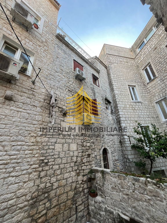 Predstavljamo vam kuću u nizu površine 163 m2, smještenu u samom centru Trogira. Ova kamena kuća raspolaže s četiri prostrane spavaće sobe, a zahvaljujući orijentaciji na jug i sjever, prostorije su ispunjene prirodnim svjetlom tijekom cijelog dana.
