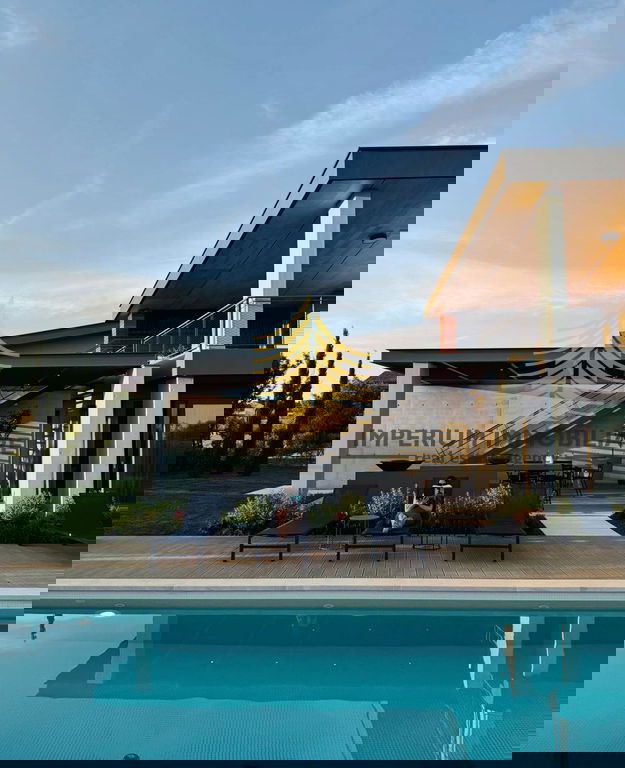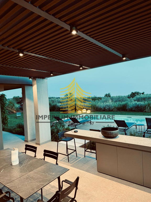 Lokacija u Vodnjanu nudi blizinu svih važnih sadržaja, a istovremeno pruža mir i predivan pogled na okolnu prirodu. Vrlo sunčana pozicija i dizajnerski elementi čine ovu kuću savršenim izborom za one koji traže luksuz, udobnost i kvalitetan životni prostor.