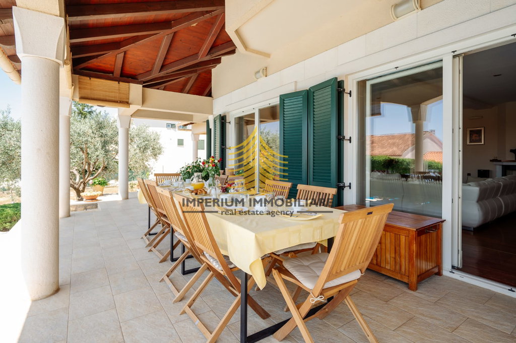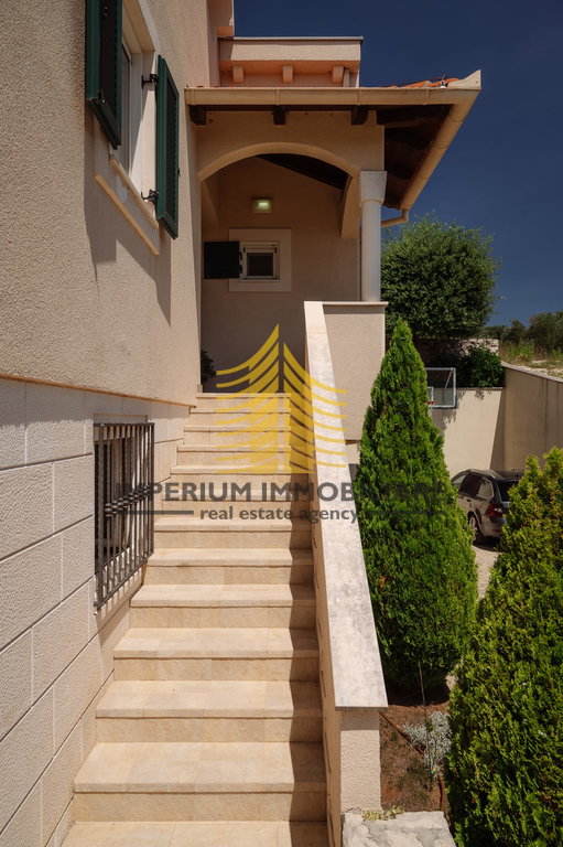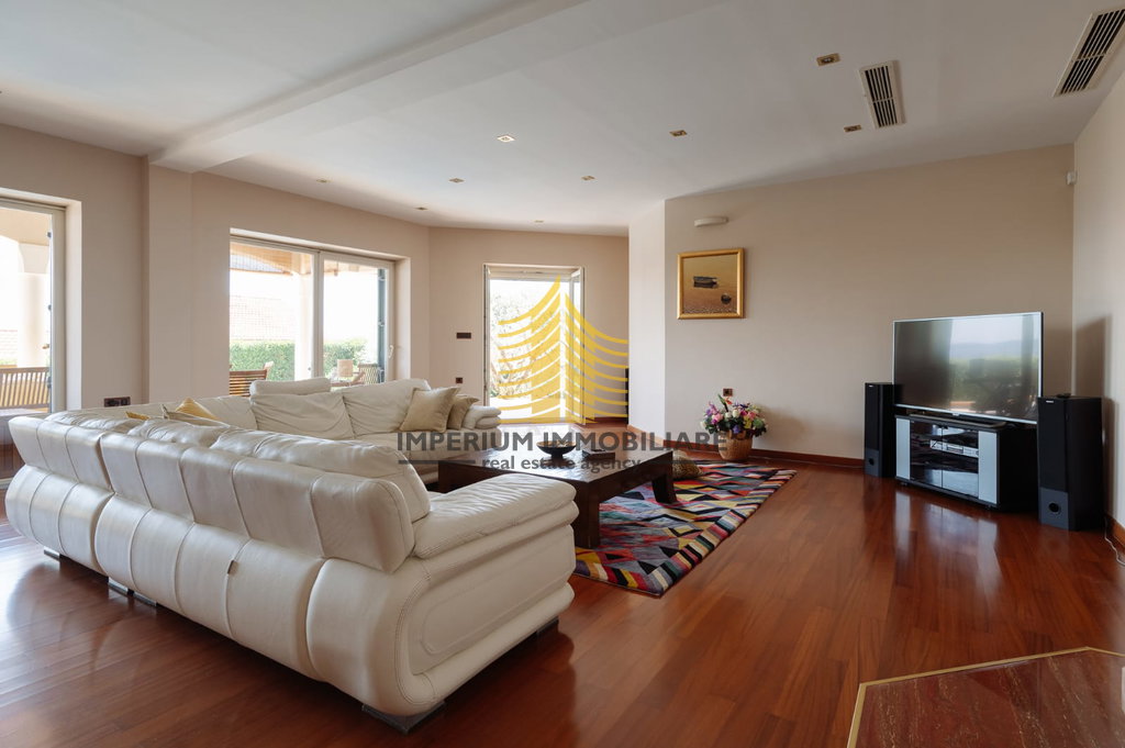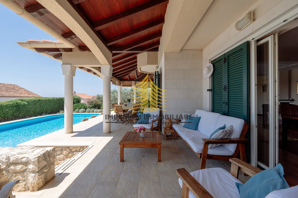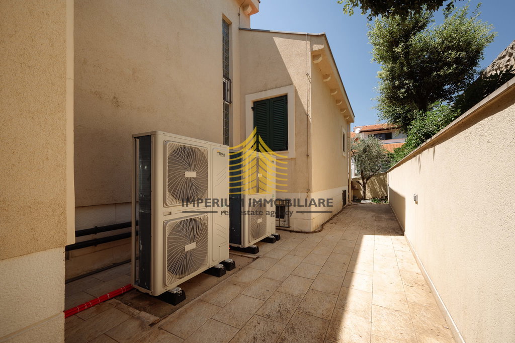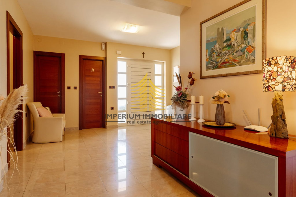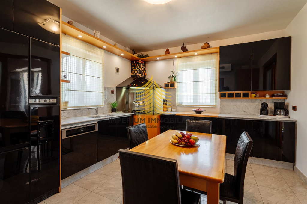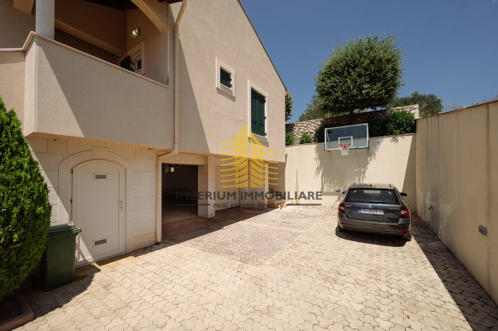 Vila se prostire na prostranoj parceli i orijentirana je prema jugoistoku, što osigurava obilje prirodne svjetlosti tijekom cijelog dana. U sklopu objekta nalazi se pet spavaćih soba, a raspored prostora dodatno obogaćuju balkon, lođa, terasa, atrij i vrt koji pružaju raznolike mogućnosti za boravak na otvorenom. Ljetna kuhinja, ostava/skladište, dvorište, podrum i garaža nadopunjuju funkcionalnost i praktičnost svakodnevnog života. Osigurano je i natkriveno parkiralište.