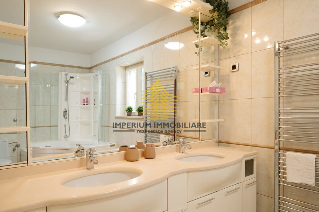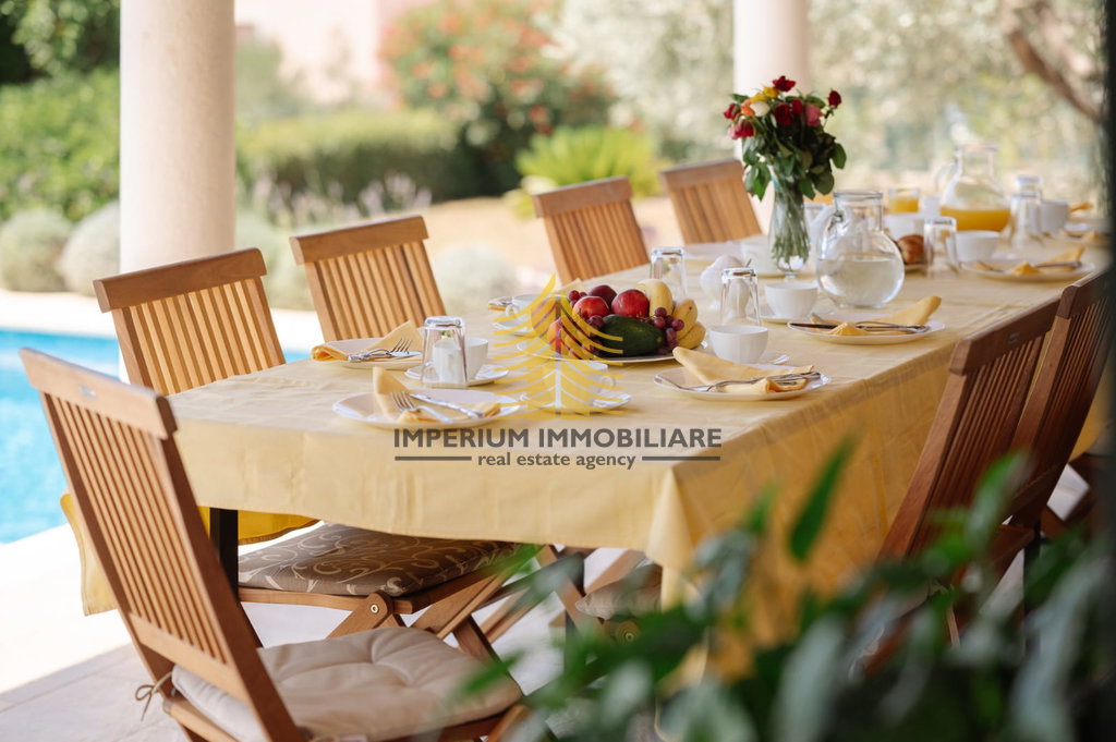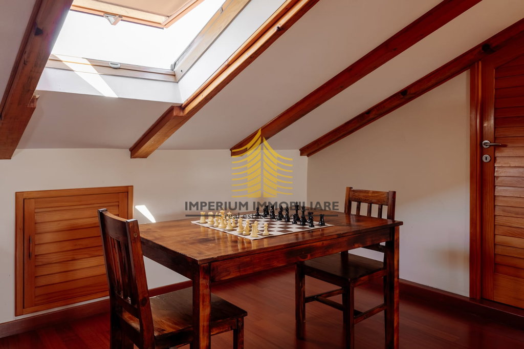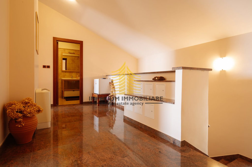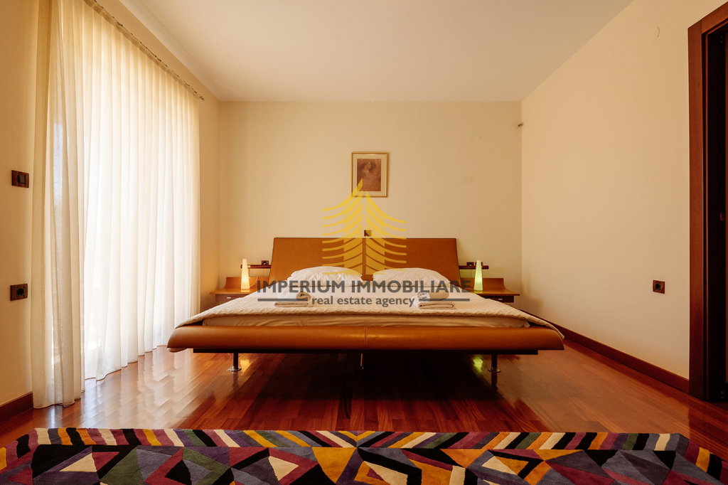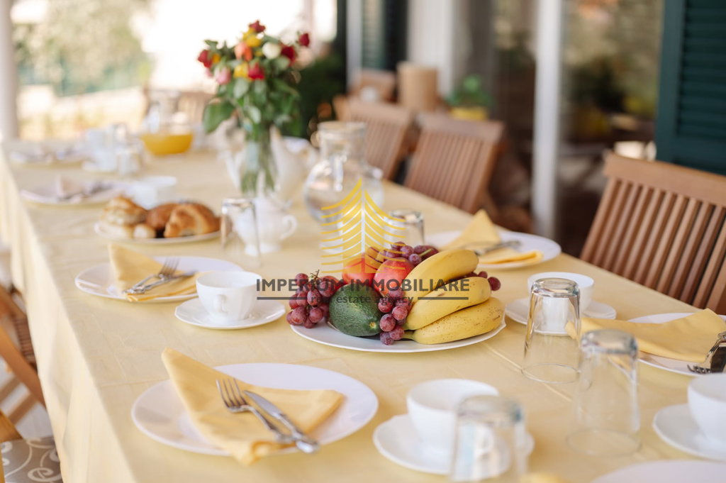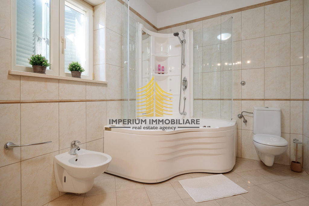 Vila se prostire na prostranoj parceli i orijentirana je prema jugoistoku, što osigurava obilje prirodne svjetlosti tijekom cijelog dana. U sklopu objekta nalazi se pet spavaćih soba, a raspored prostora dodatno obogaćuju balkon, lođa, terasa, atrij i vrt koji pružaju raznolike mogućnosti za boravak na otvorenom. Ljetna kuhinja, ostava/skladište, dvorište, podrum i garaža nadopunjuju funkcionalnost i praktičnost svakodnevnog života. Osigurano je i natkriveno parkiralište.