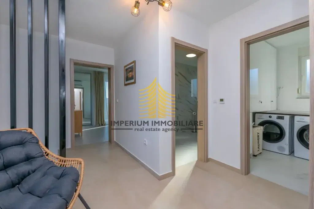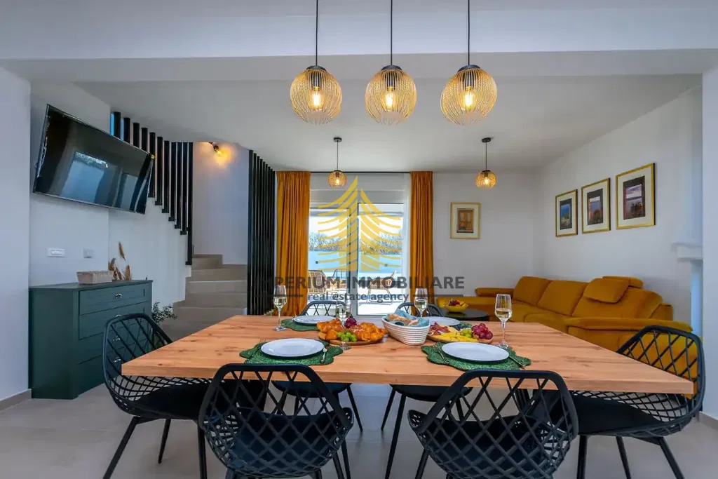 Na prodaju je moderno dizajnirana kuća površine 100 m2, izgrađena 2024. godine. Ova nekretnina nudi suvremeni stil življenja te pruža izuzetnu udobnost i funkcionalnost. Smještena je na vrlo mirnoj lokaciji u blizini mora, okružena prirodom i obiljem sunčeve svjetlosti, što je čini idealnim izborom za obitelj ili investitore koji traže kvalitetu života u skladnom okruženju.