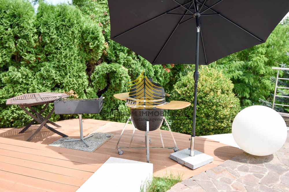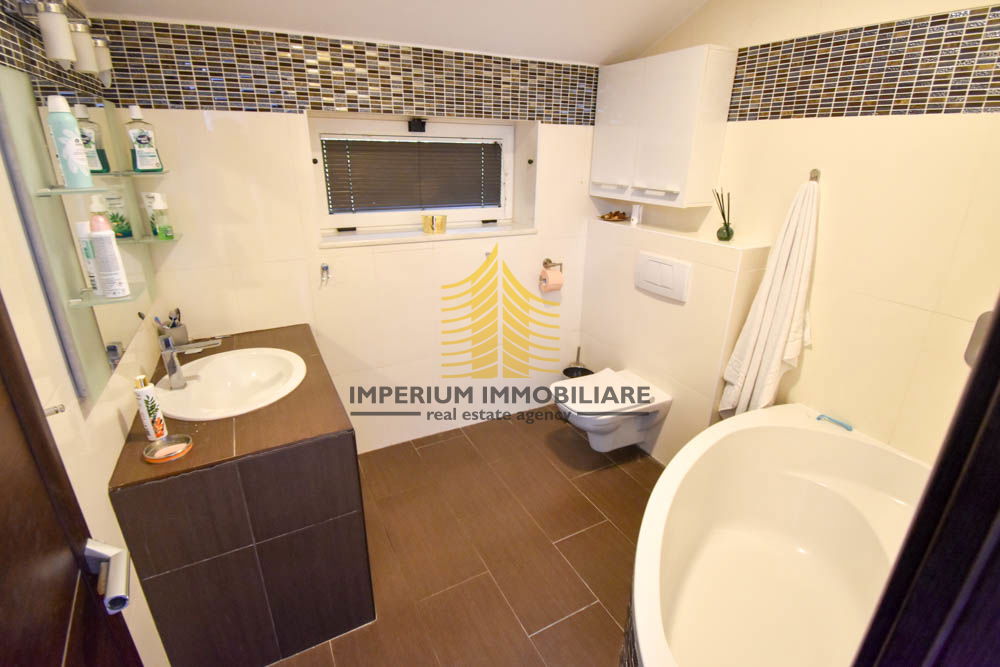 Dodatne pogodnosti uključuju vanjski bazen,balkon, lođu, vrt, konobu, vrtnu kućicu, dvorište, drvarnicu, privatno parkiralište i dvije garaže. Sigurnost je osigurana video nadzorom i alarmnim sustavom. Kuća se nalazi uz asfaltirani put, a grijanje je moguće na struju, plin, kamin i putem fotonaponskih ćelija. Klima uređaj, bazen, roštilj i uređena okućnica dodatno upotpunjuju ponudu.