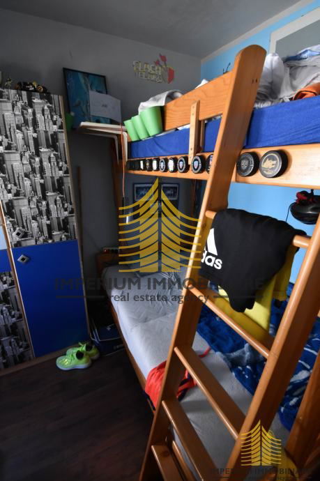 Stan se sastoji od ulaznog hodnika, kuhinje, dnevnog boravka/blagavaonice, tri spavaće sobe od kojih su dvije povezane s loggiom, kupaonice i odvojenog wc-a.