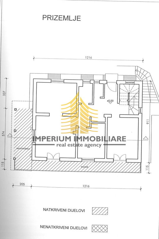Prizemlje je potpuno uređeno i namješteno, a prostire se na 97,98 m2.