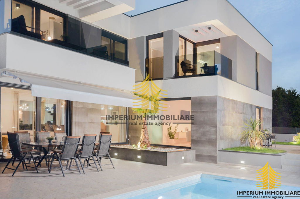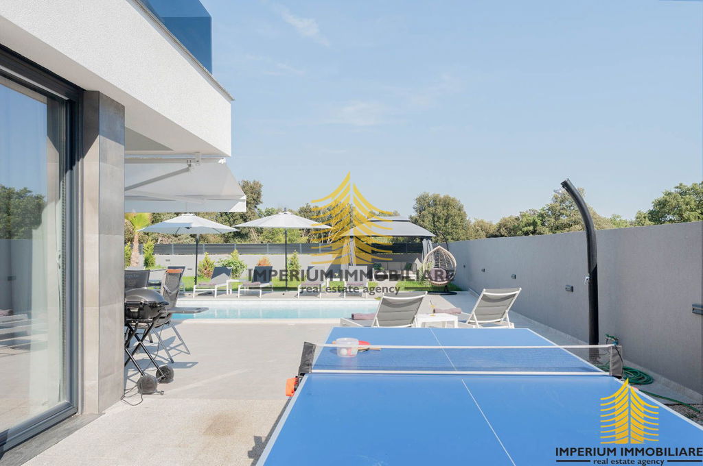 Nekretnina se ističe suvremenom arhitekturom i pažljivo osmišljenim rasporedom prostorija. Dnevni boravak, kuhinja i blagovaonica su odvojeni, što omogućuje dodatnu privatnost i ugodnu atmosferu za svakodnevni život. Četiri spavaće sobe pružaju dovoljno prostora za veću obitelj ili goste.