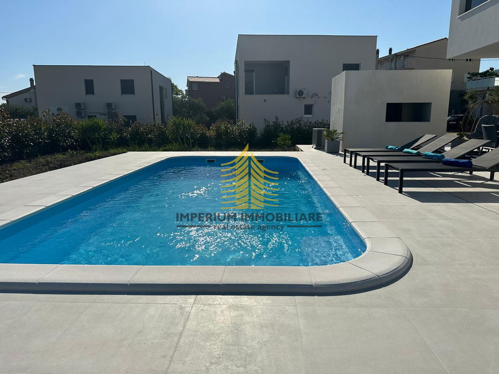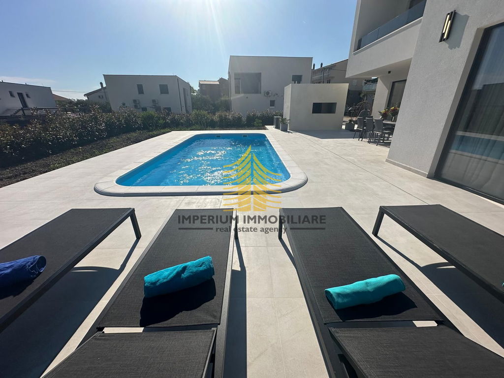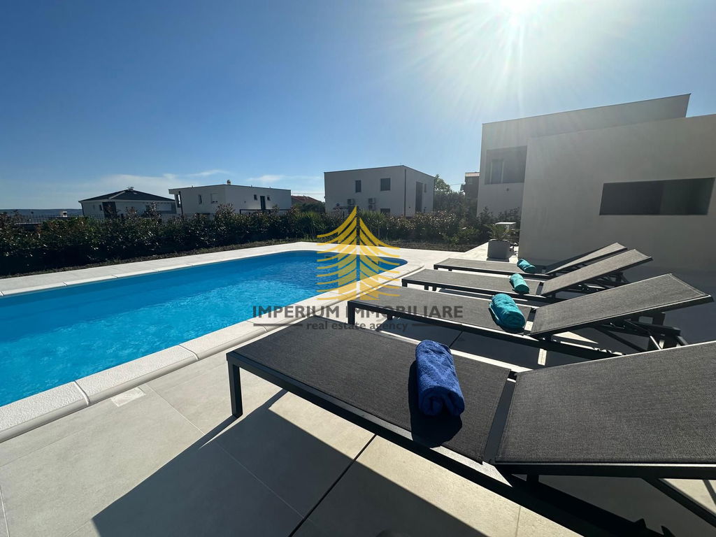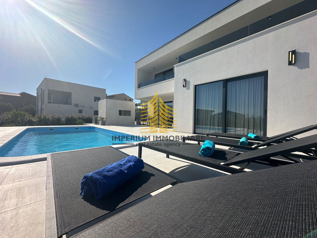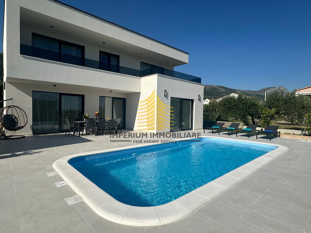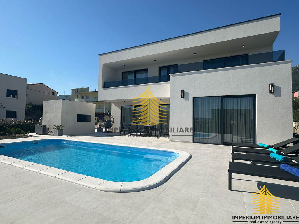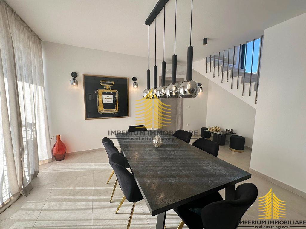 Prodaje se luksuzna vila s pogledom na more stambene površine 178 m2, a sa terasom 257 m2. Nalazi se 900 metara od mora. Objekt je okružen vilama u izuzetno mirnom i urednom susjedstvu.