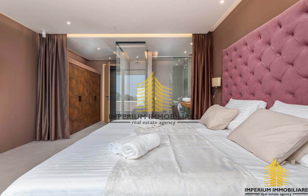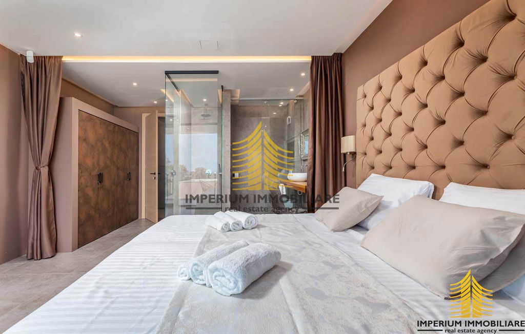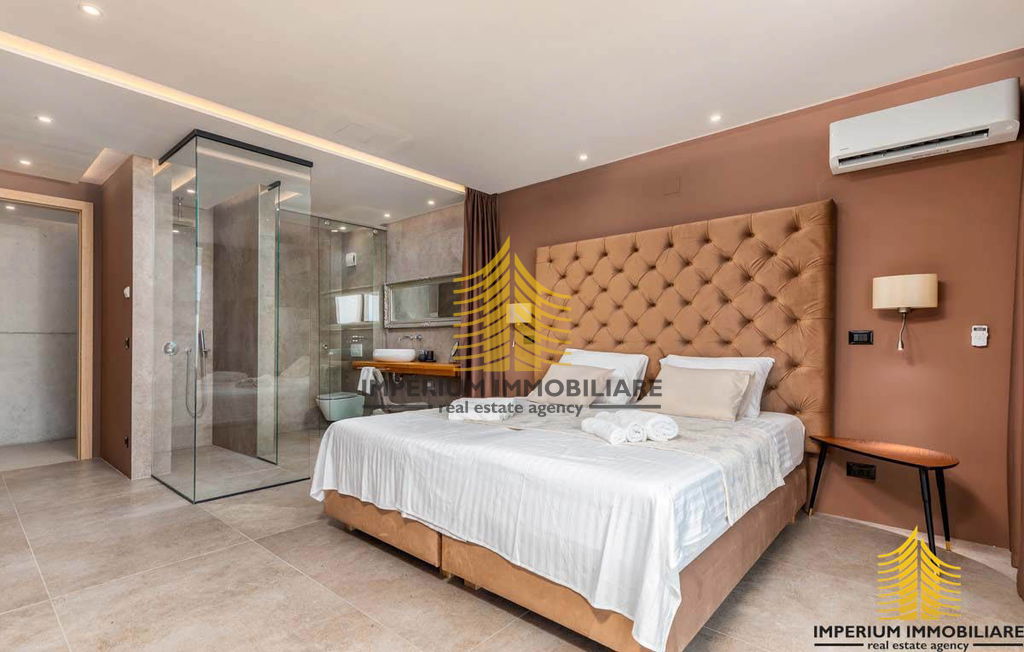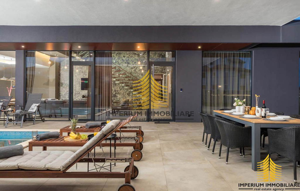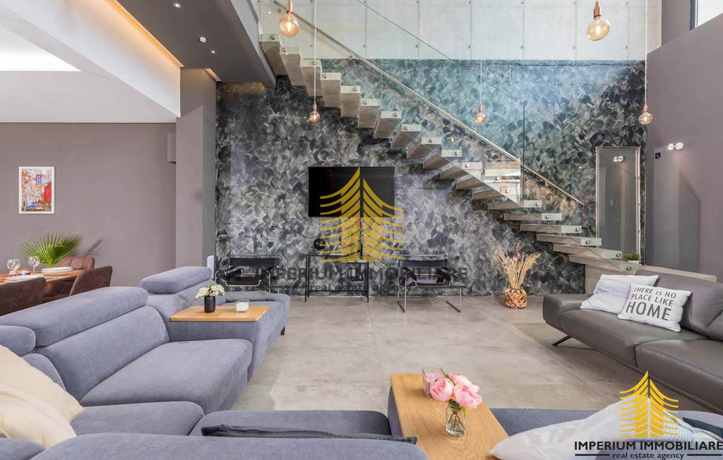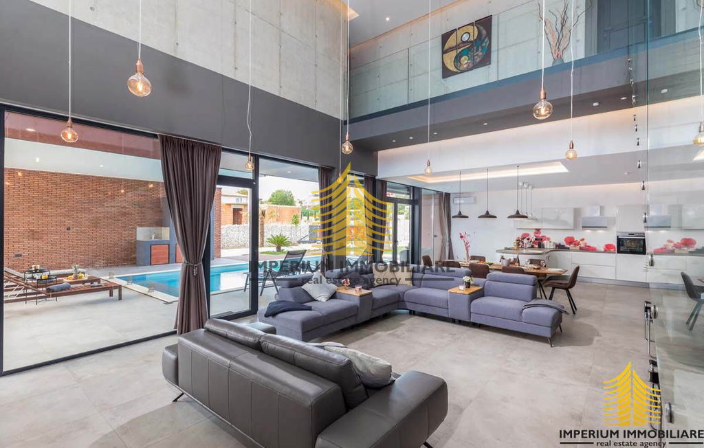 Prodajemo prekrasnu vilu koja je dovršena sredinom 2021. godine. Ova nevjerojatna nekretnina oduševljava svojim nezaboravnim arhitektonskim izričajem koji privlači svačiju pažnju. Unutrašnjost vile obuhvaća prostrano unutarnje predvorje visine 7.5 metara gdje se nalaze moderno napravljene stepenicama koje vode na kat.