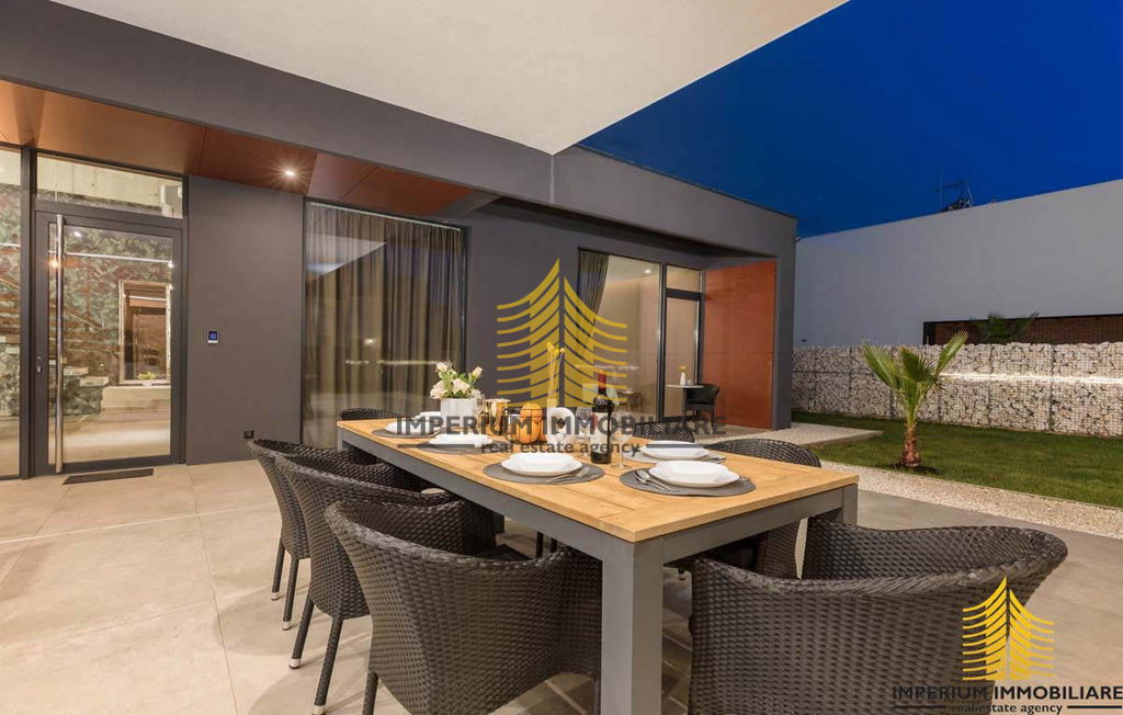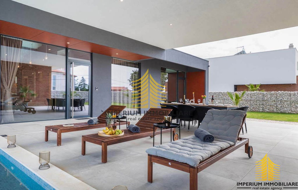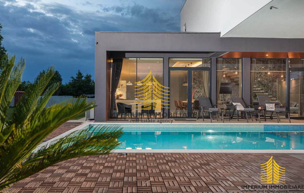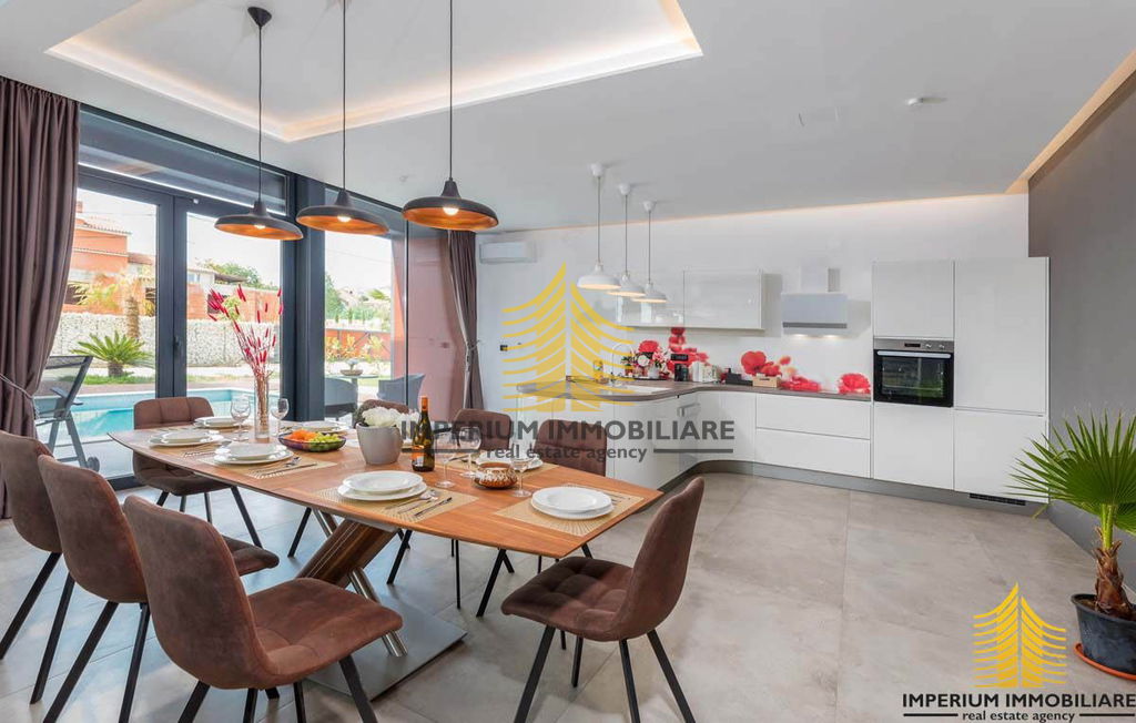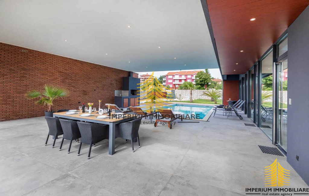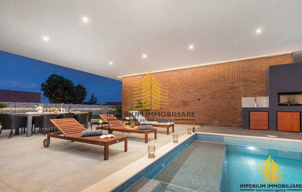 Ova iznimna vila prilagođena je osobama s invaliditetom, bez stepenica na prizemlju, uključujući i spavaću sobu. Također je idealna za obitelji s malom djecom, omogućavajući roditeljima da ih nadziru tijekom kupanja izravno iz kuhinje ili dnevnog boravka. Velike natkrivene terase pružaju obilje hlada u vrućim ljetnim danima, a tu je i vanjski roštilj na drva i ugljen. Ograđena parcela osigurava mir i sigurnost, a bazen, udaljen samo 2 metra od kuhinje i 5 metara od dnevnog boravka, pruža poseban ugođaj s klasičnim stepenicama i dijelom za opuštanje u hladu.