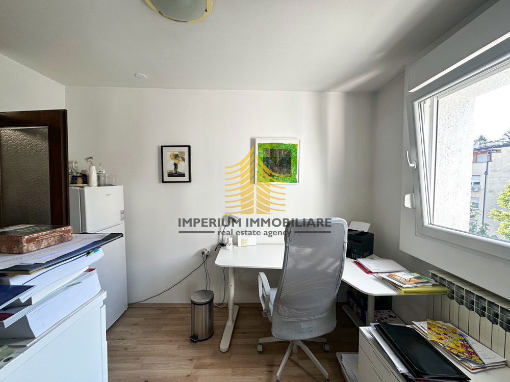 Prostor je potpuno prilagođen 2021. godine, pružajući suvremeno radno okruženje pogodno za različite poslovne djelatnosti. Nalazi se na mirnoj lokaciji, što omogućuje ugodan rad bez ometanja, a zahvaljujući visokoj etaži i velikim prozorima, prostor je izuzetno sunčan i nudi lijep pogled na okolicu.