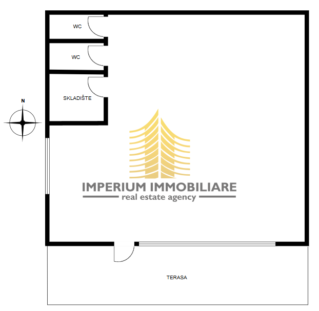 Unutrašnjost prostora omogućuje funkcionalan raspored i prilagodbu potrebama različitih ugostiteljskih djelatnosti. Prostrani glavni dio lokala jednostavno je prilagodljiv, a dodatnu vrijednost donosi terasa od 18 m2 koja pruža mogućnost proširenja kapaciteta i stvaranja privlačnog vanjskog prostora za goste.