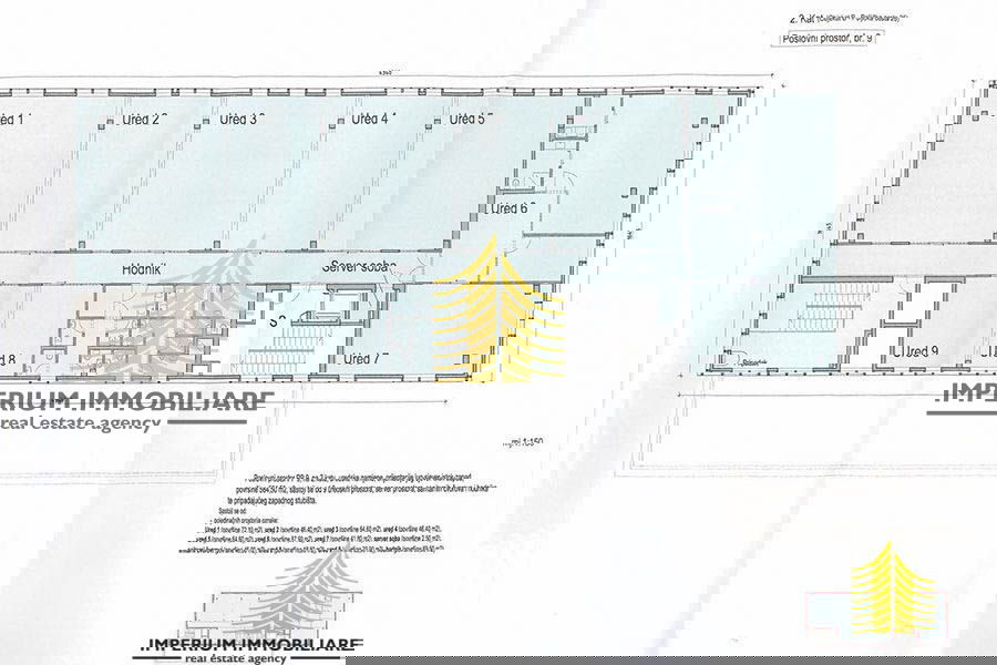 Ova kutna jedinica sjeverozapadne orijentacije obasjana je prirodnom svjetlošću, zahvaljujući prozorima duž cijelog zida. Trenutno je podijeljena staklenim pregradama na tri odvojene prostorije. Međutim, fleksibilnost je ključna, pa budući zakupnik može zadržati staklene pregrade za individualne prostore ili ih ukloniti kako bi stvorio prostrani open space, prilagođen vlastitim potrebama.
