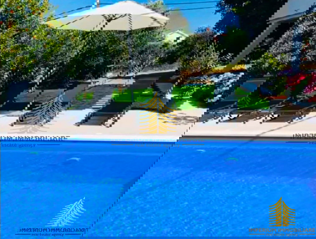 Kuća se može pohvaliti predivno uređenim dvorištem, gdje se nalazi bazenski prostor za opuštanje, te spremište od 17 m2 i parking prostor za tri vozila.