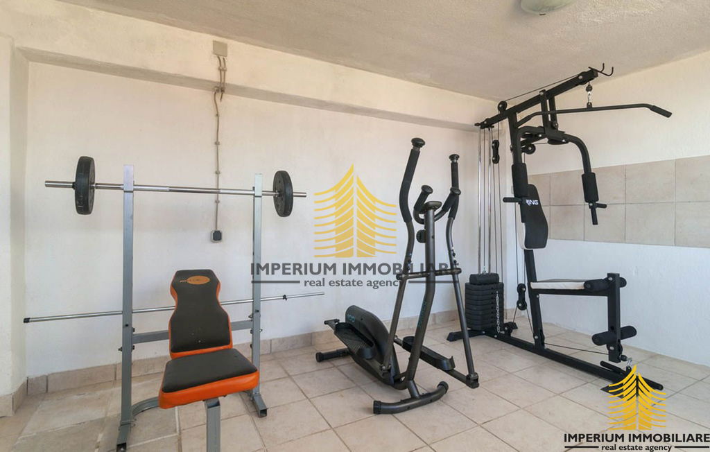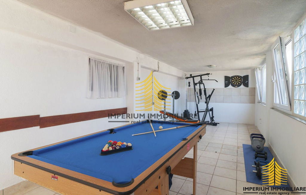 Sastoji je od velikog dnevnog boravka, 6 spavaćih soba, 4 toaleta, teretane, te prostranog dvorišta s mogućnošću parkirnom mjesta za 8 automobila.