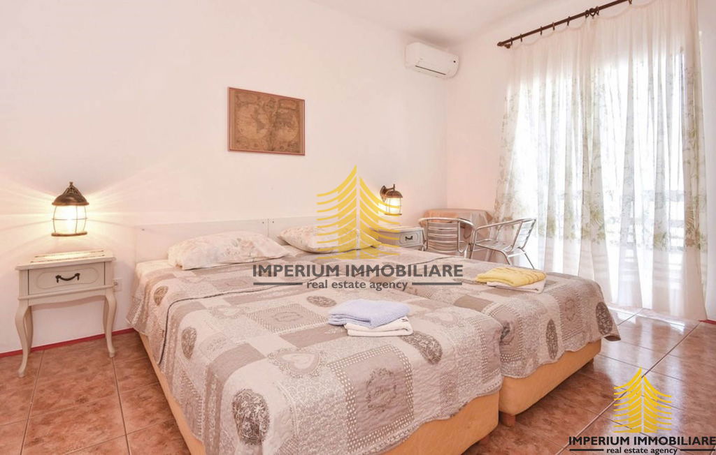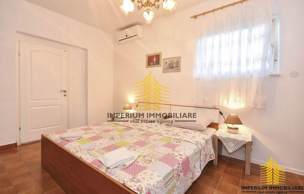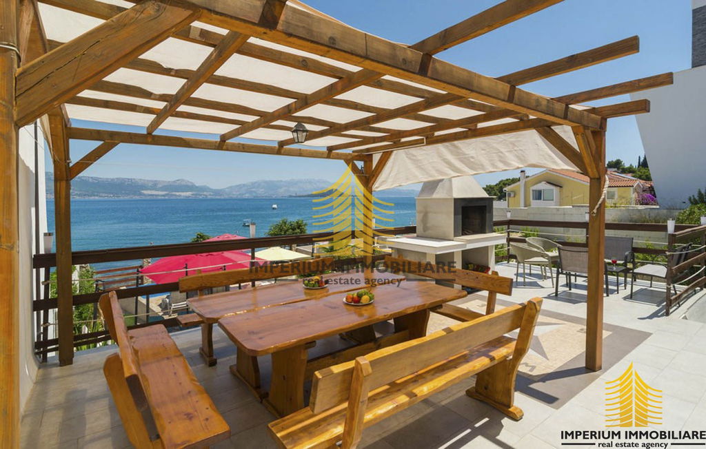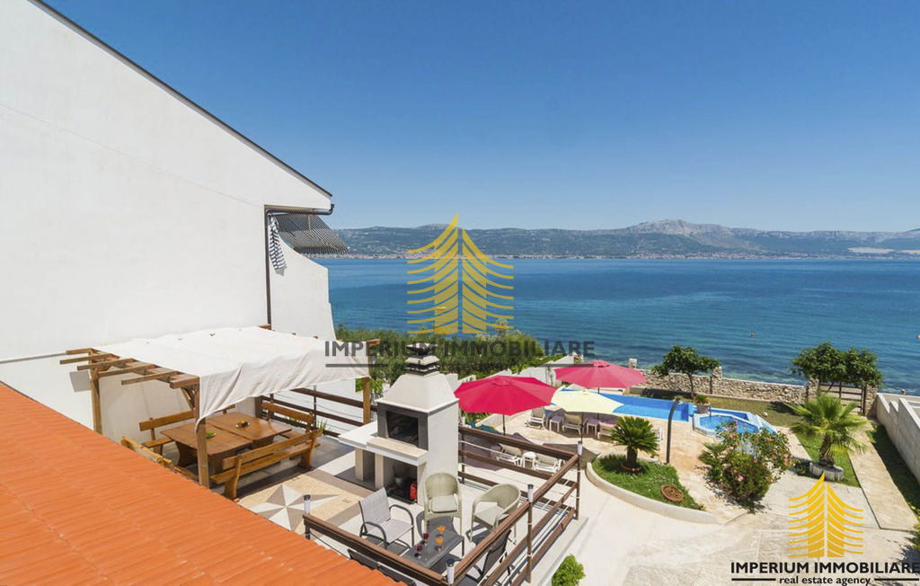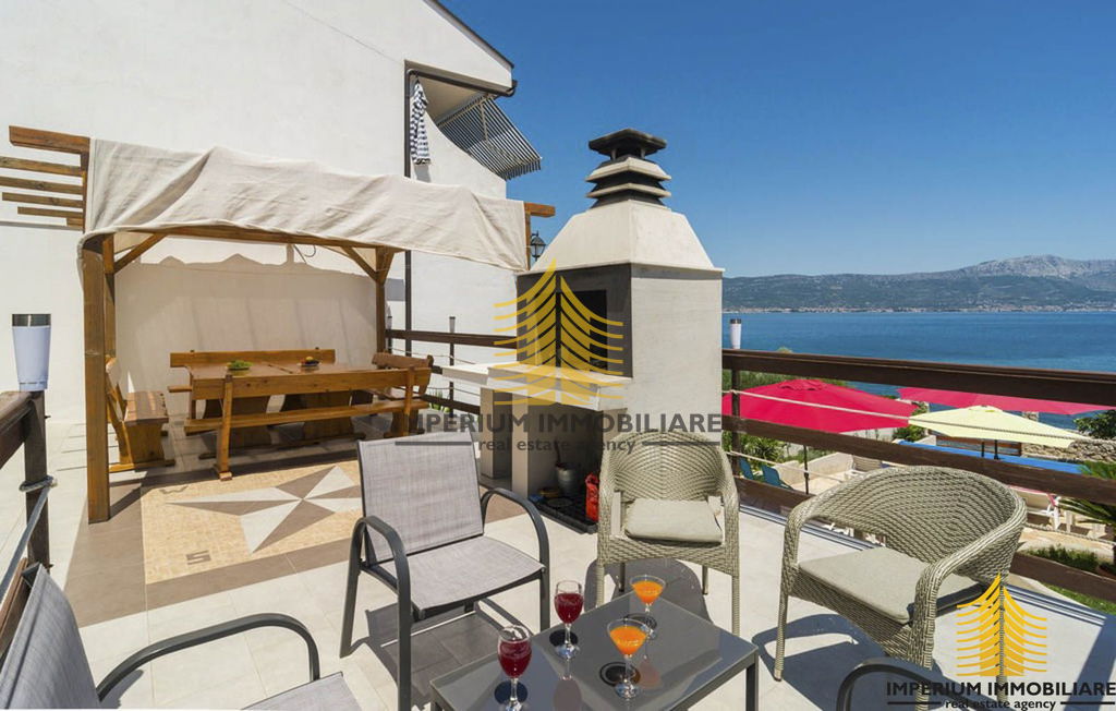 Kuća je smještena uz samu plažu s prekrasnim uređenim dvorištem s bazenom.