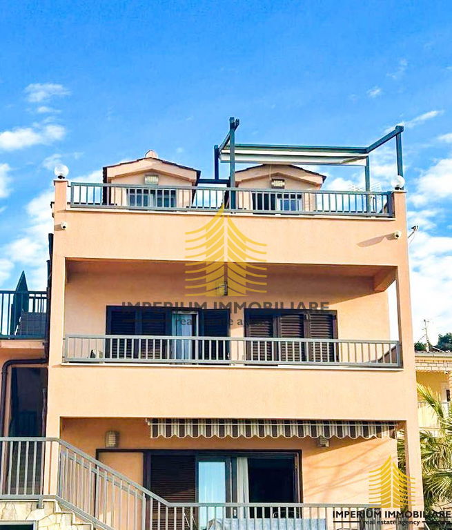 For sale is a beautiful family house spread over three floors and a studio apartment, located in the first row to the sea, in the small idyllic village of Ražanj, just a few steps from the coast. The house covers 410 m2 and is perfect for those seeking a luxurious lifestyle by the sea, with an unobstructed view of the sea and surroundings. Each floor has its separate entrance, providing complete privacy and flexibility in the use of space.