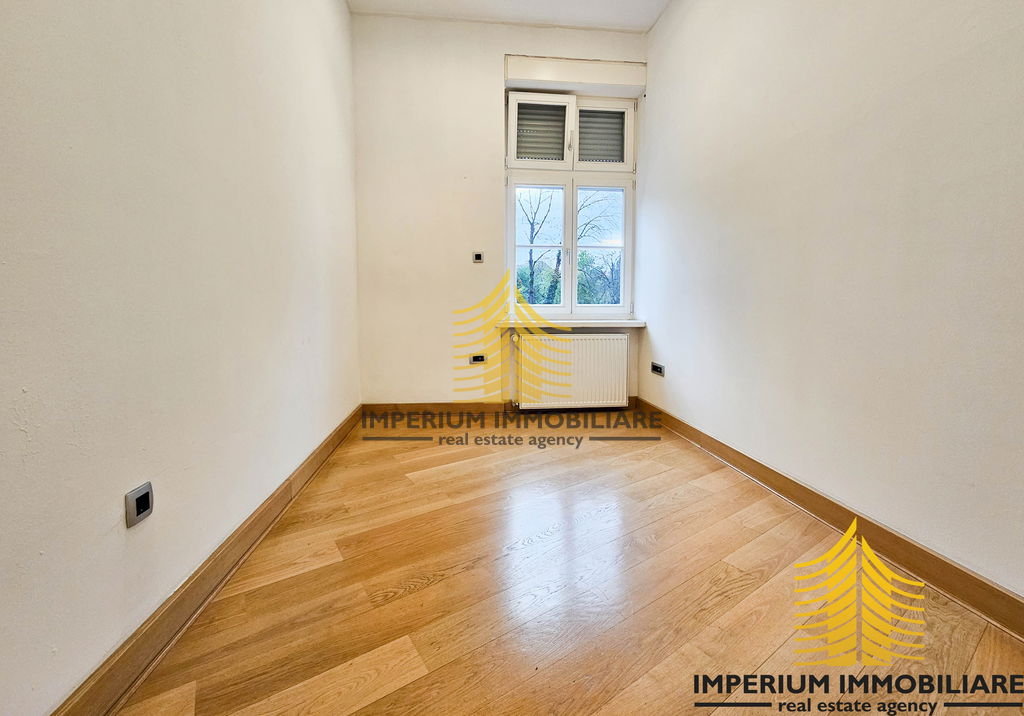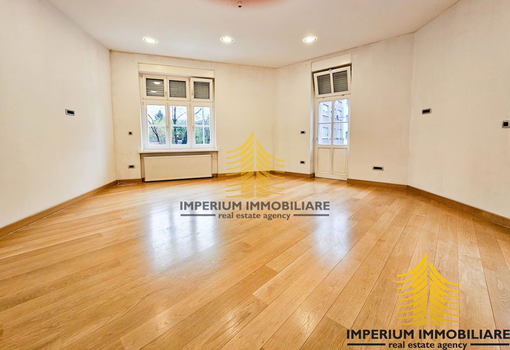 Opremljen je prema svim modernim standardima – vanjska nova drvena stolarija s termo staklima napravljena u originalnom obliku, vrhunske termo rolete na automatsko podizanje/spuštanje, kompletno uređena unutarnja originalna stolarija, sve nove instalacije – struje, vode, grijanja, novi podovi od vrhunskog hrasta, visoki stropovi – 3,40m te stropne i podne izolacije.