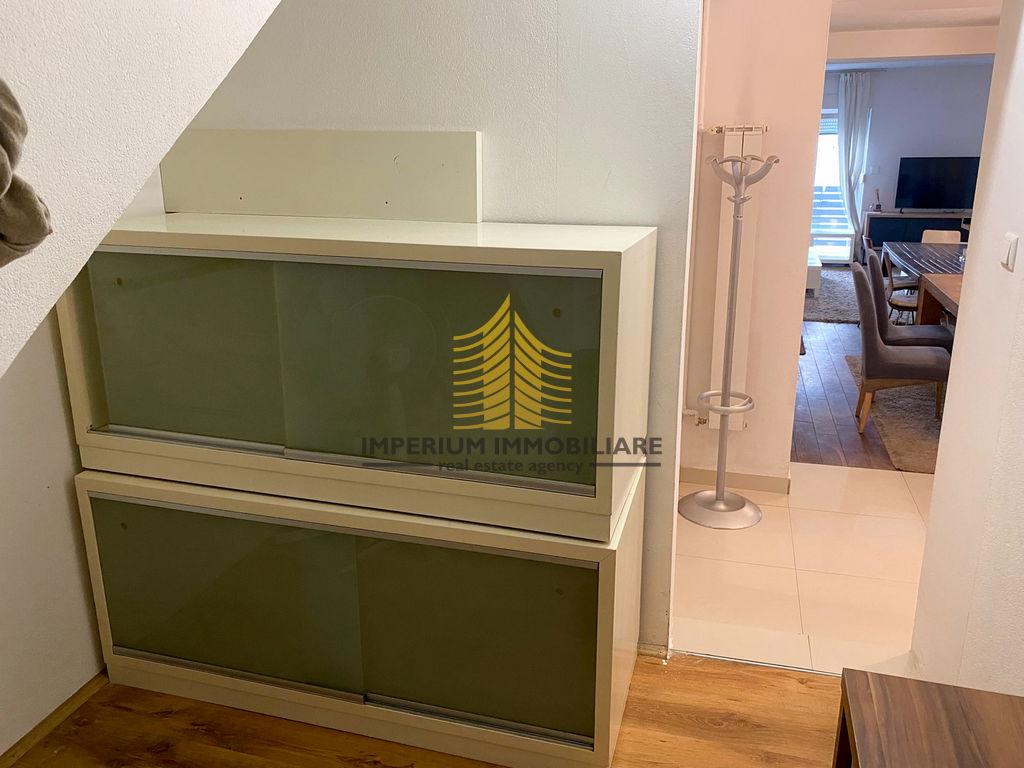 Stan je adaptiran 2021. godine, što jamči suvremeni standard stanovanja i osvježen interijer. Prostor je funkcionalno organiziran s dvije spavaće sobe te je opremljen kuhinjom s aparatima, perilicom posuđa, perilicom rublja, televizorom, krevetom i radnim stolom. Posebnu vrijednost prostoru daju dva balkona i terasa, pružajući dodatni prostor za opuštanje i boravak na otvorenom.