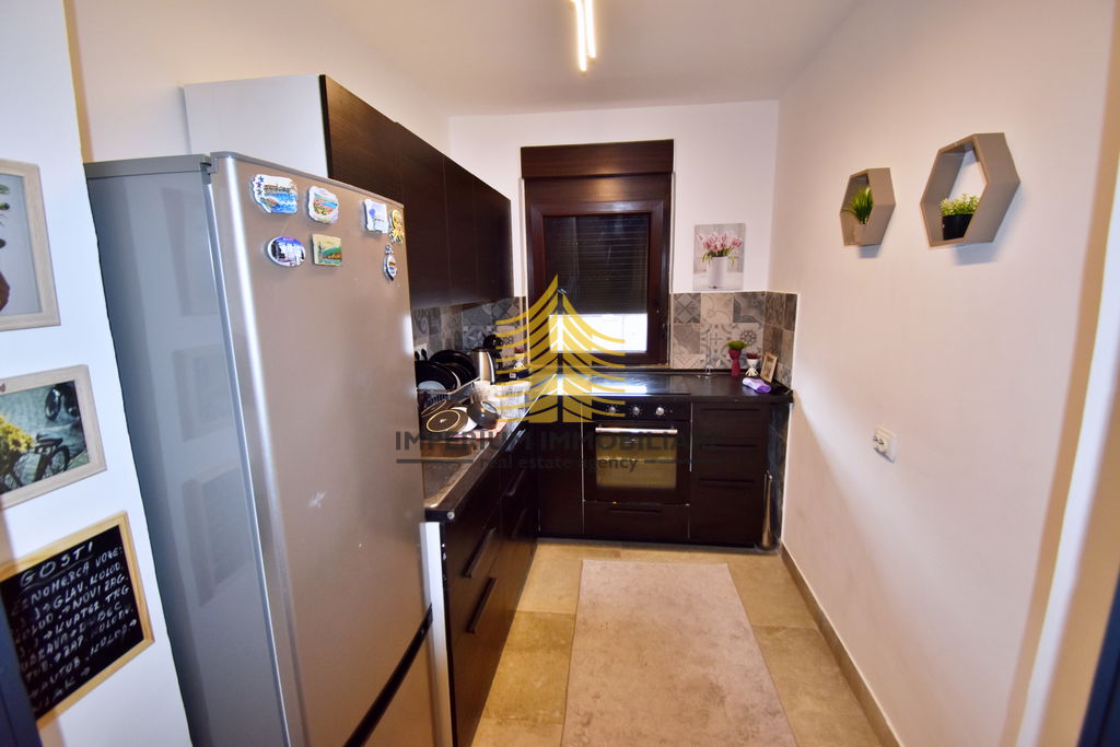 Ovaj dvosobni stan odlikuje se funkcionalnošću i ugodnim ambijentom. Smješten na izuzetno mirnoj lokaciji, idealan je za one koji traže privatnost i opuštanje nakon radnog dana. Stan ima orijentaciju prema zapadu, jugu i sjeveru, što osigurava obilje prirodne svjetlosti tijekom dana i lijep pogled na okolinu.