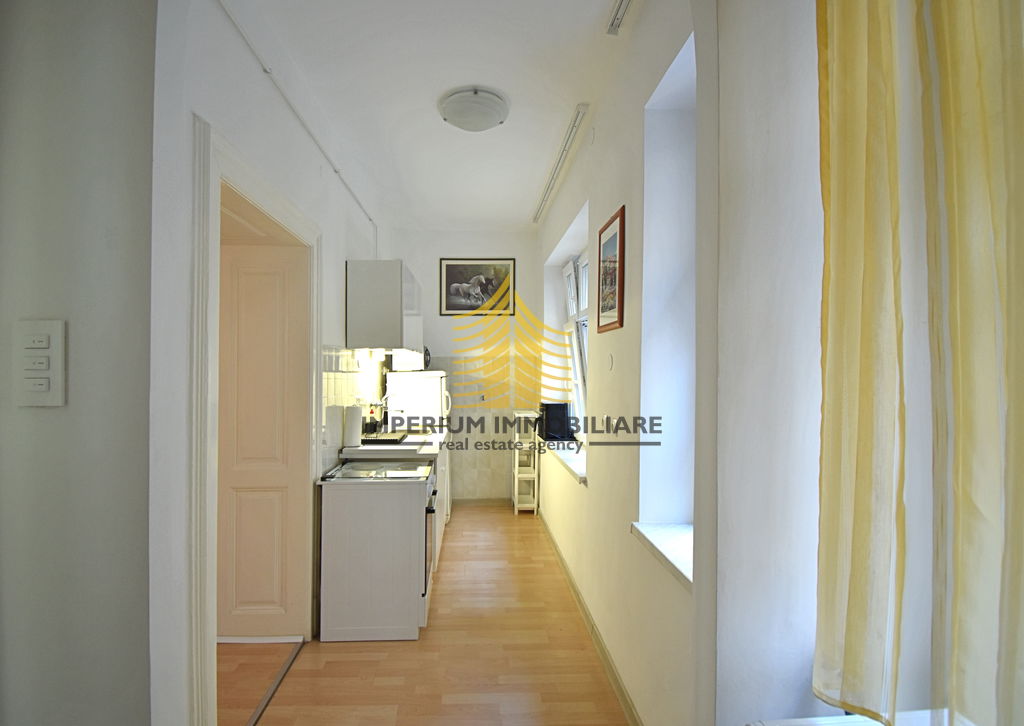 U ponudi je stan za najam, površine 26 m2, smješten na prvom katu dvoetažne zgrade u atraktivnom dijelu Donjeg Grada.